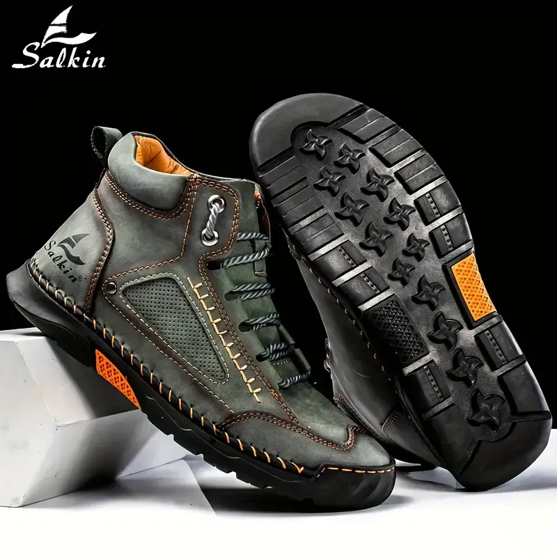 Men's Comfortable Handmade Leather Boots – Waterproof, Arch Support, Pressure Relief, Spacious Toe Box Outdoor Leather Shoes
