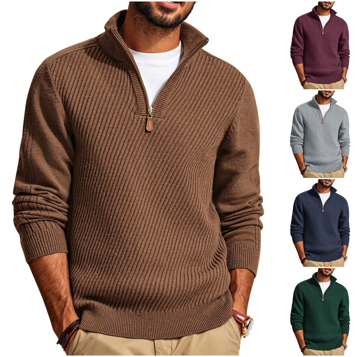 CLEARANCE SALE🔥 Men's Zipper Casual Slim Knit Texture Pullover Sweater