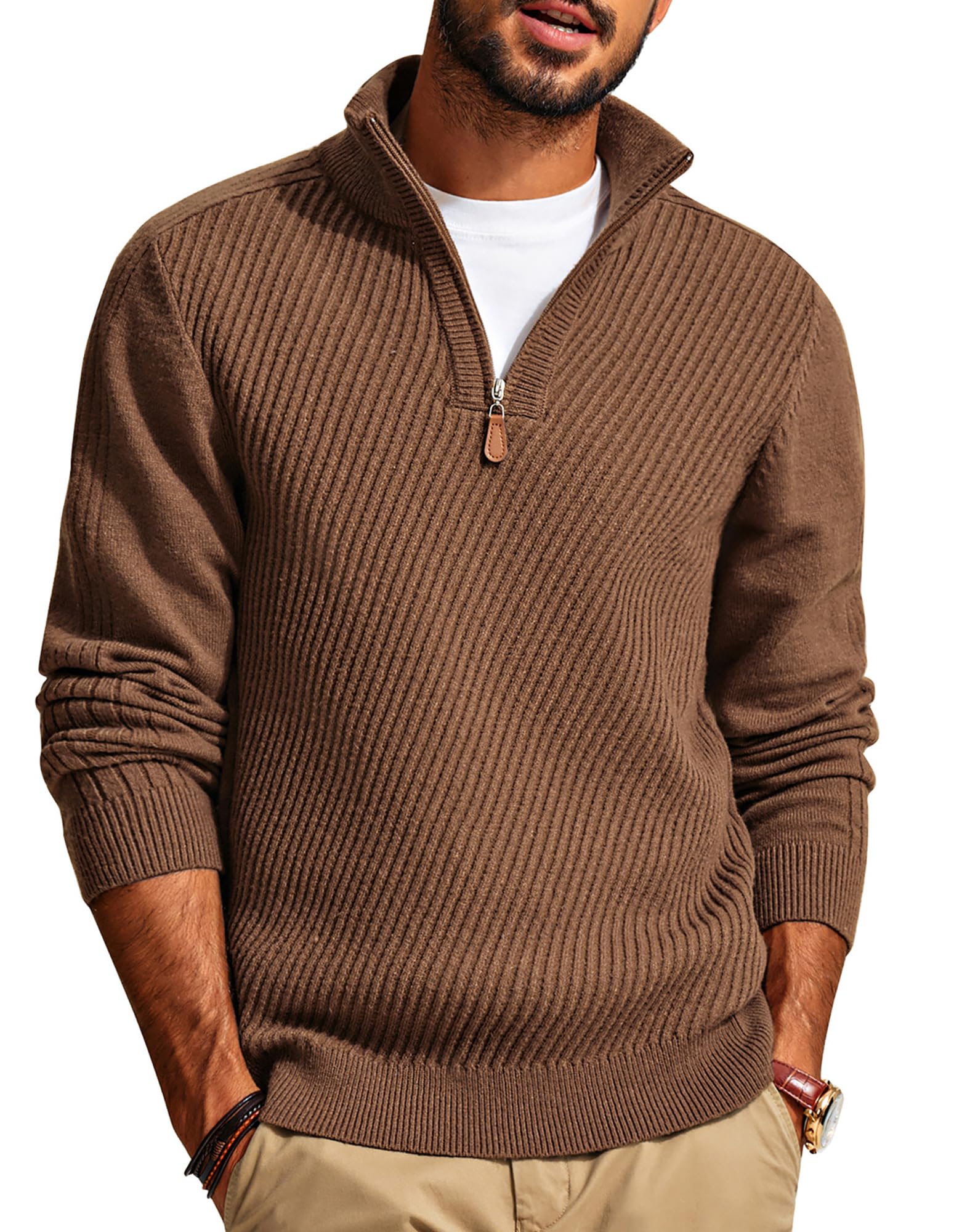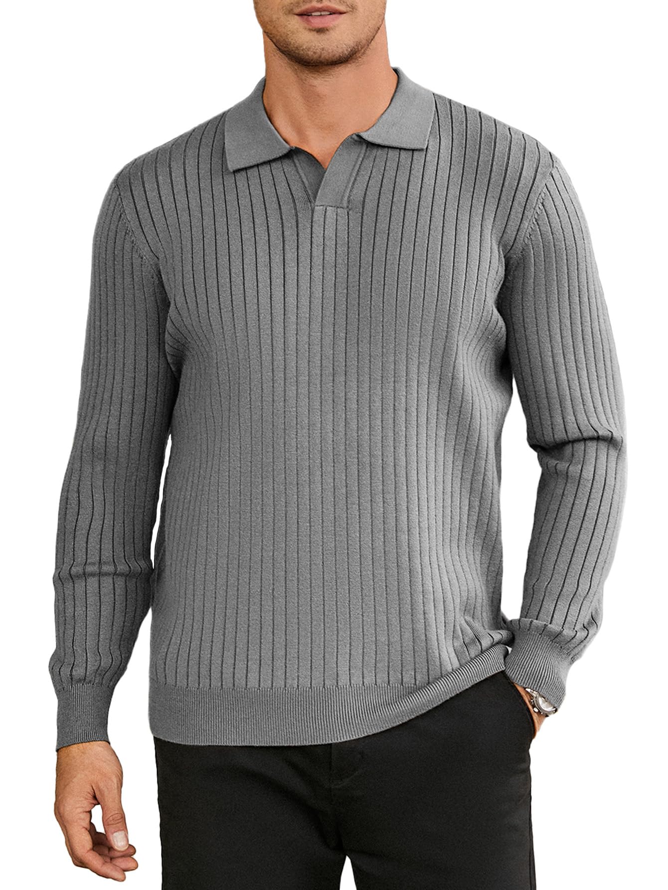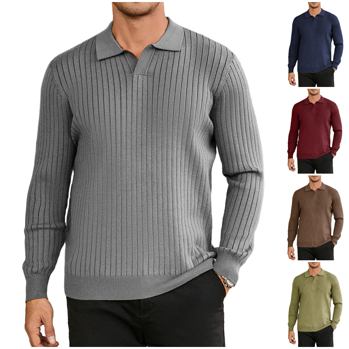 NEW🔥 2025 Men's Ribbed Knit Sweater Casual Long Sleeve Polo Shirt