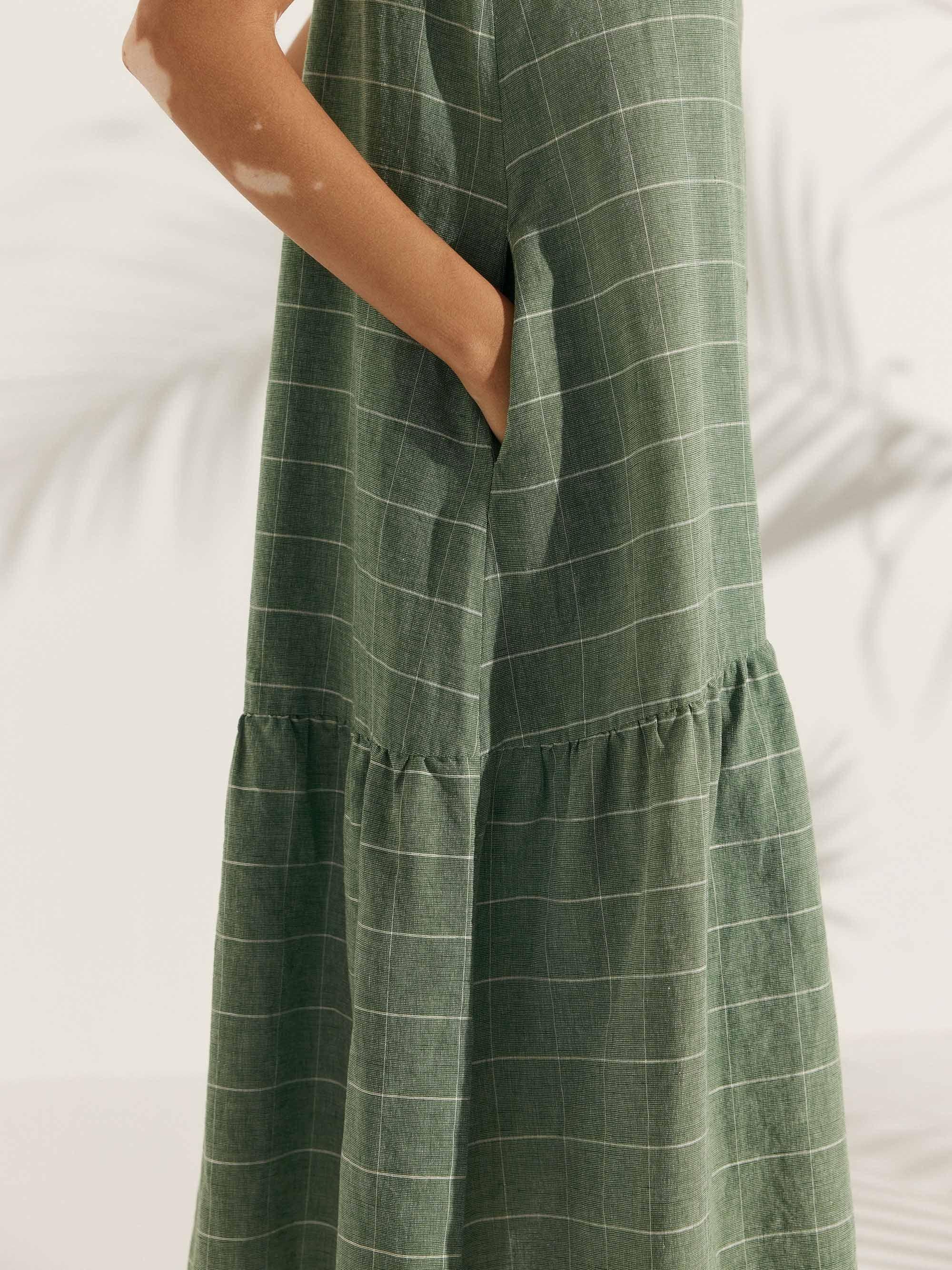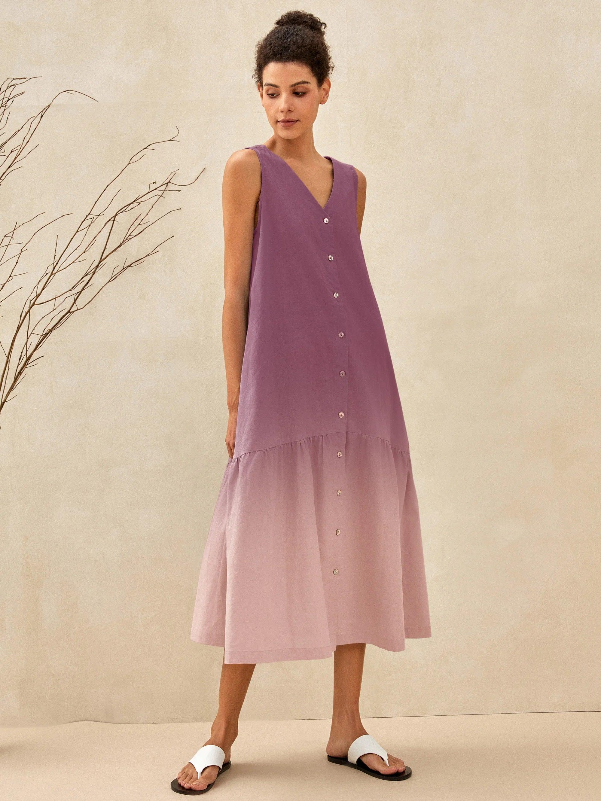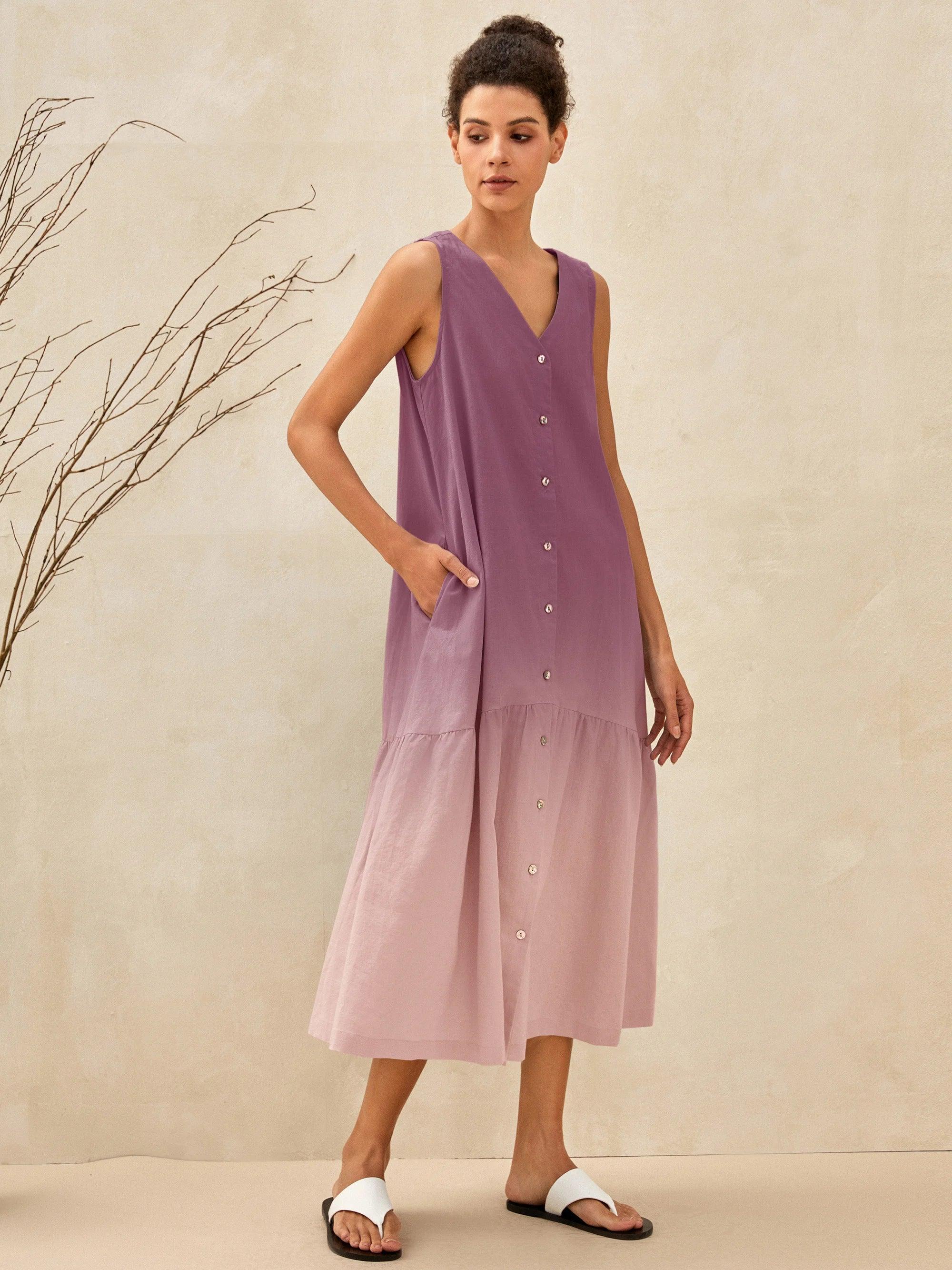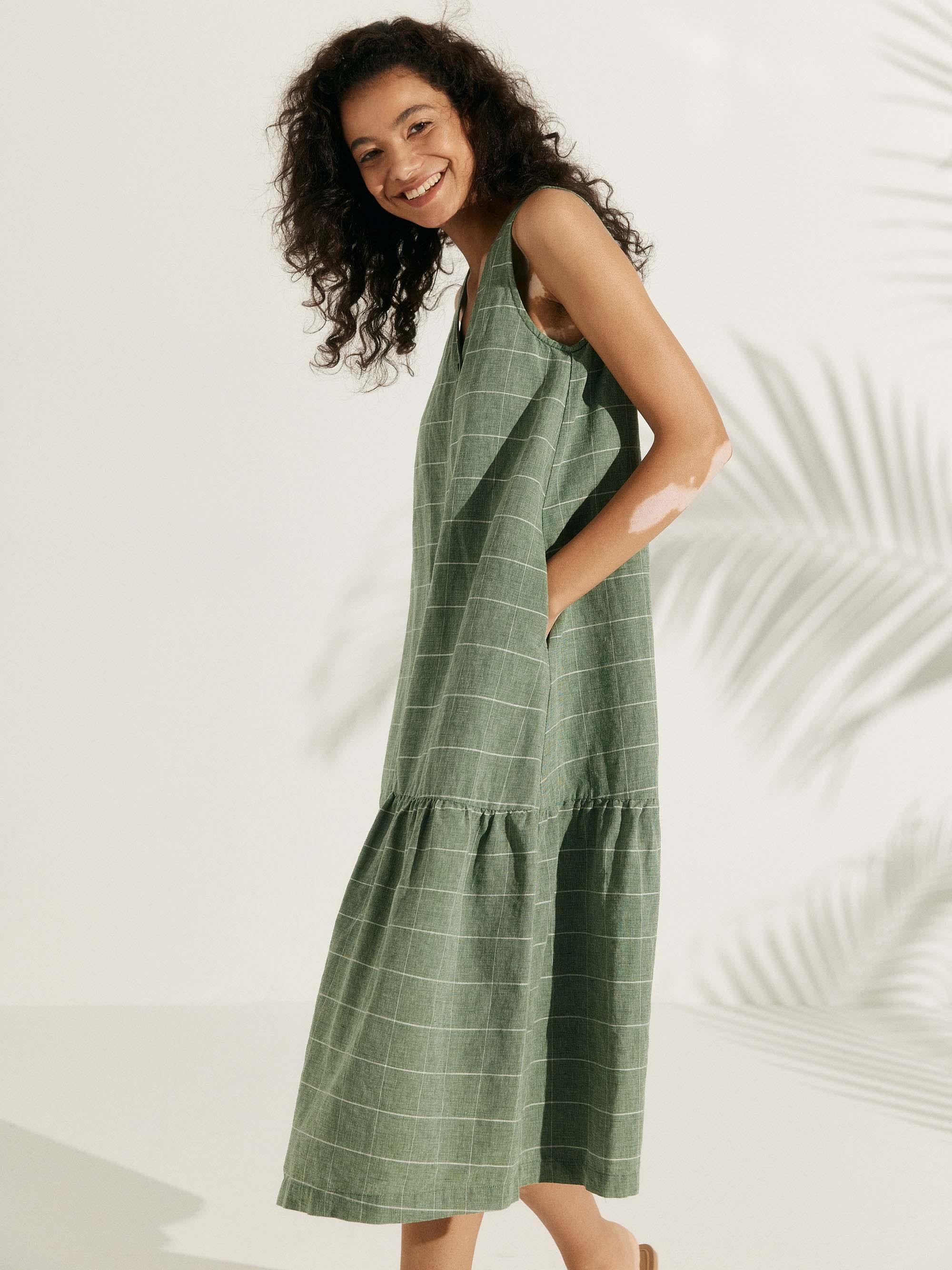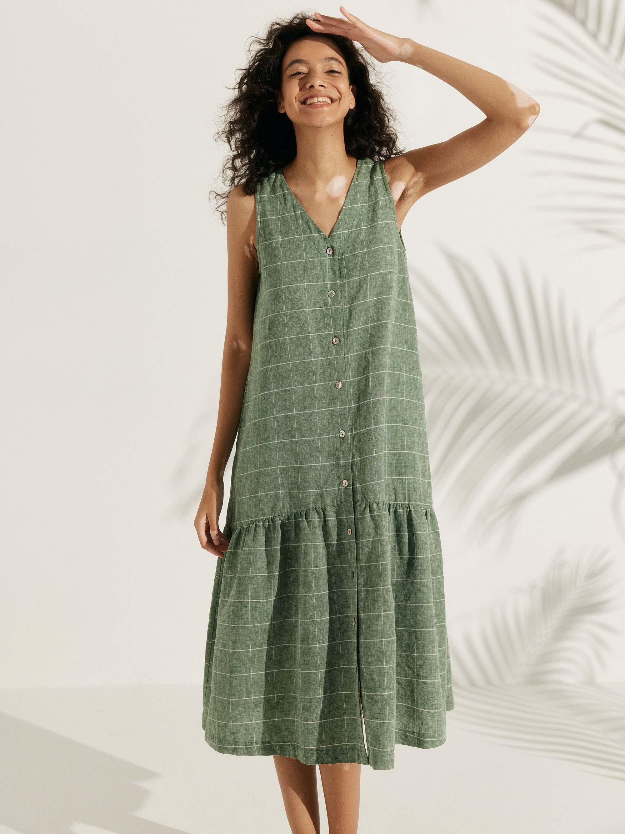 Linen Vacation Sleeveless V-Neck Mid-Length Dress CELINE