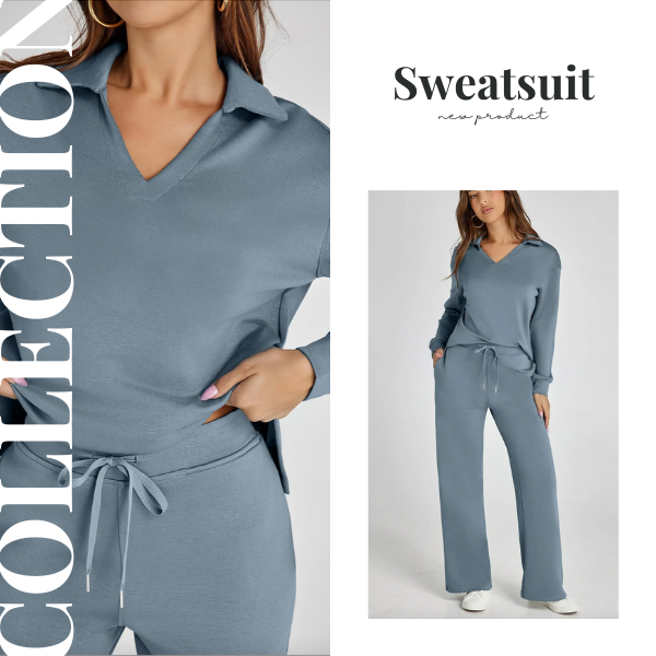 The sweat sets designed with a sporty polo collar, V-neck and high-low hem,high waisted pants with Drawstring,drawcord for a custom fit with a loose fit that reveals wide legs,High-low hem offers extra coverage in back, 4-way stretch for easy movement.