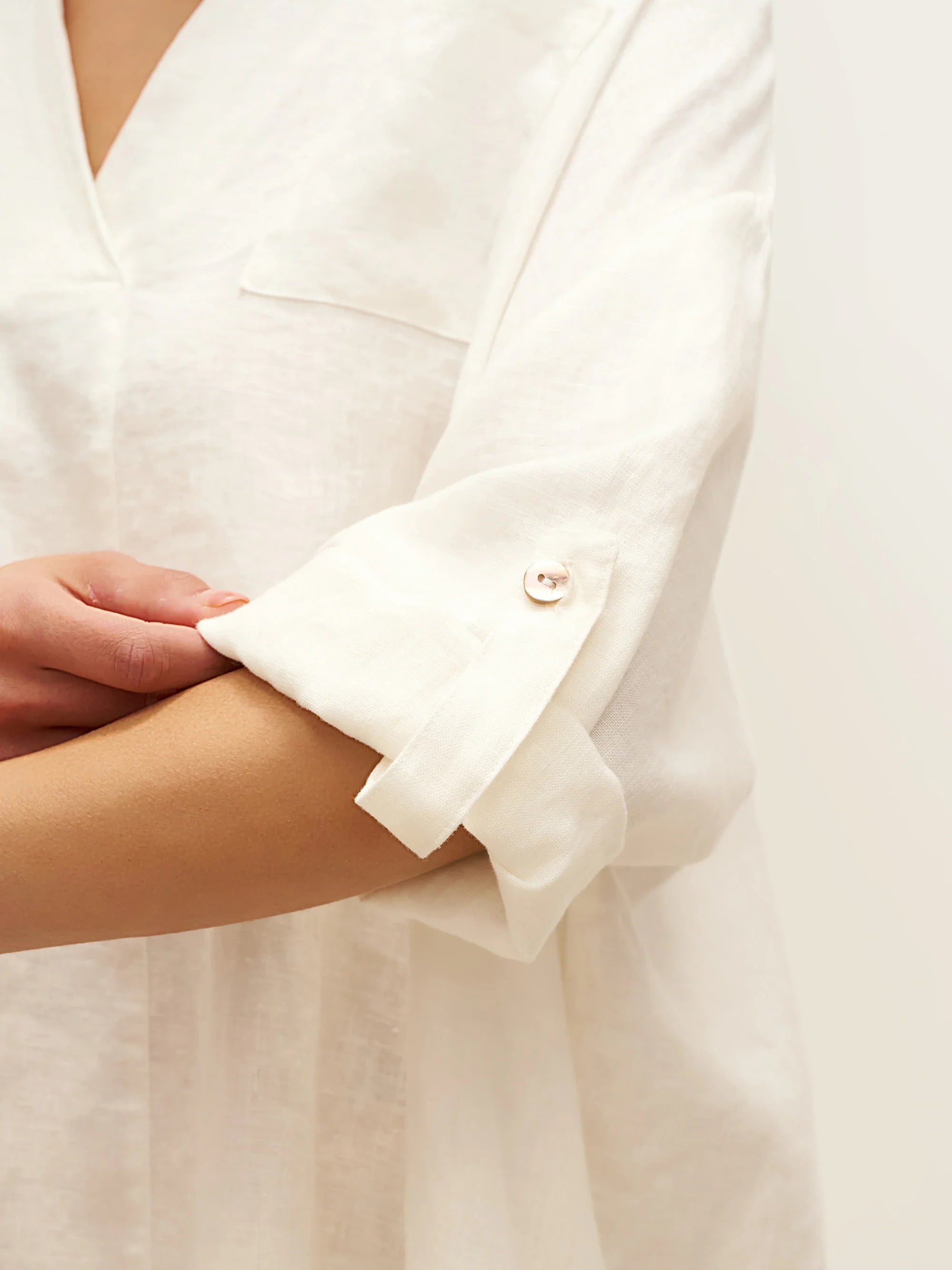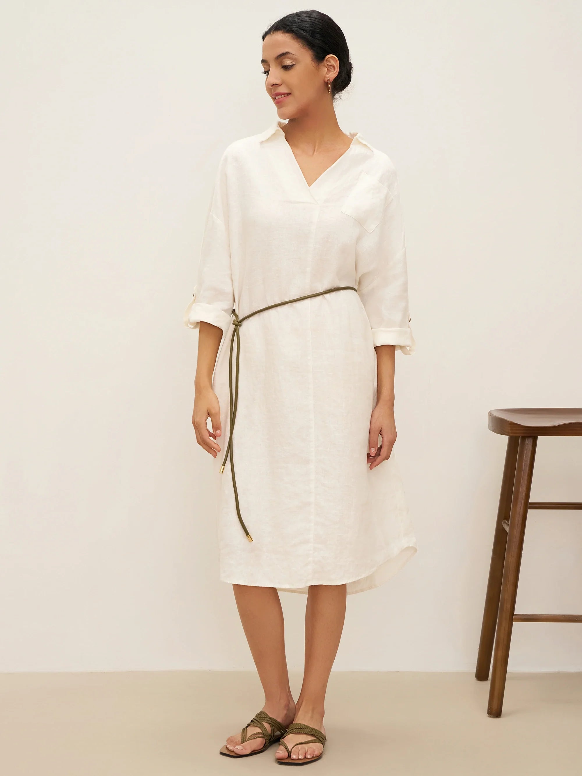 A timeless linen shirt dress that combines comfort with effortless style. Perfect for casual urban outings, offering a relaxed yet polished look.