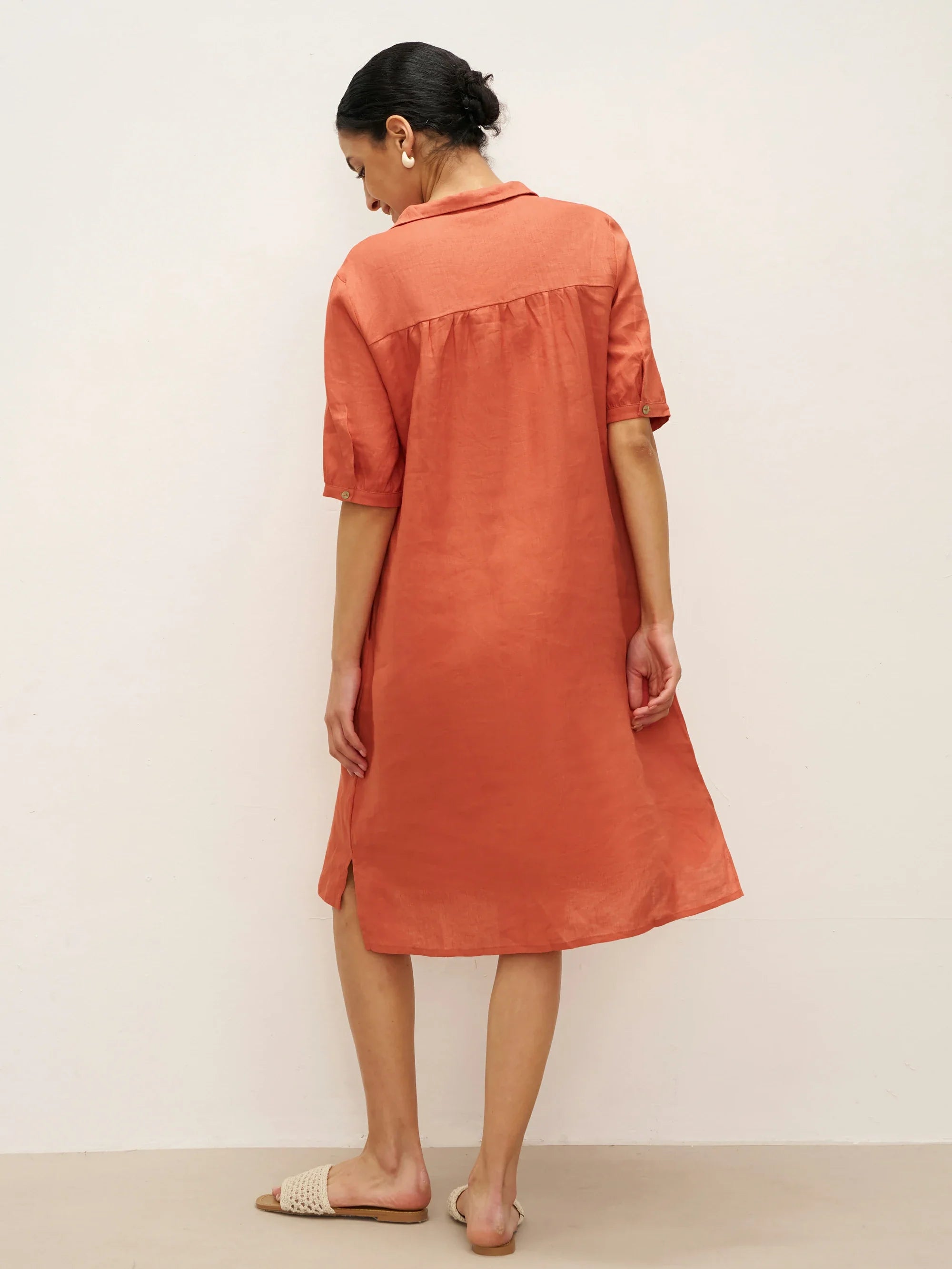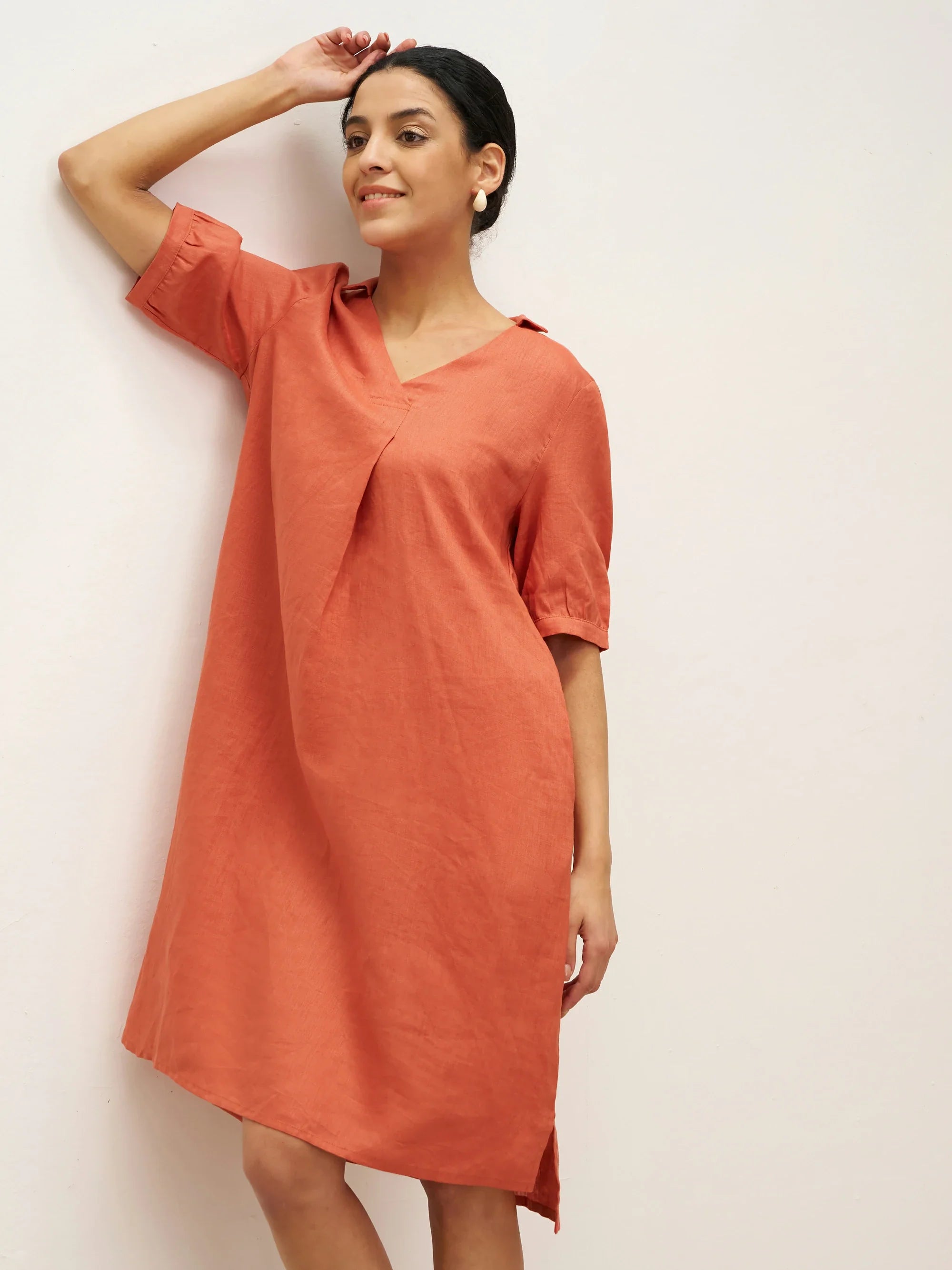 Step into effortless elegance with our sun orange dress, featuring an irregular slit hemline and in-seam pockets for comfort and practicality.