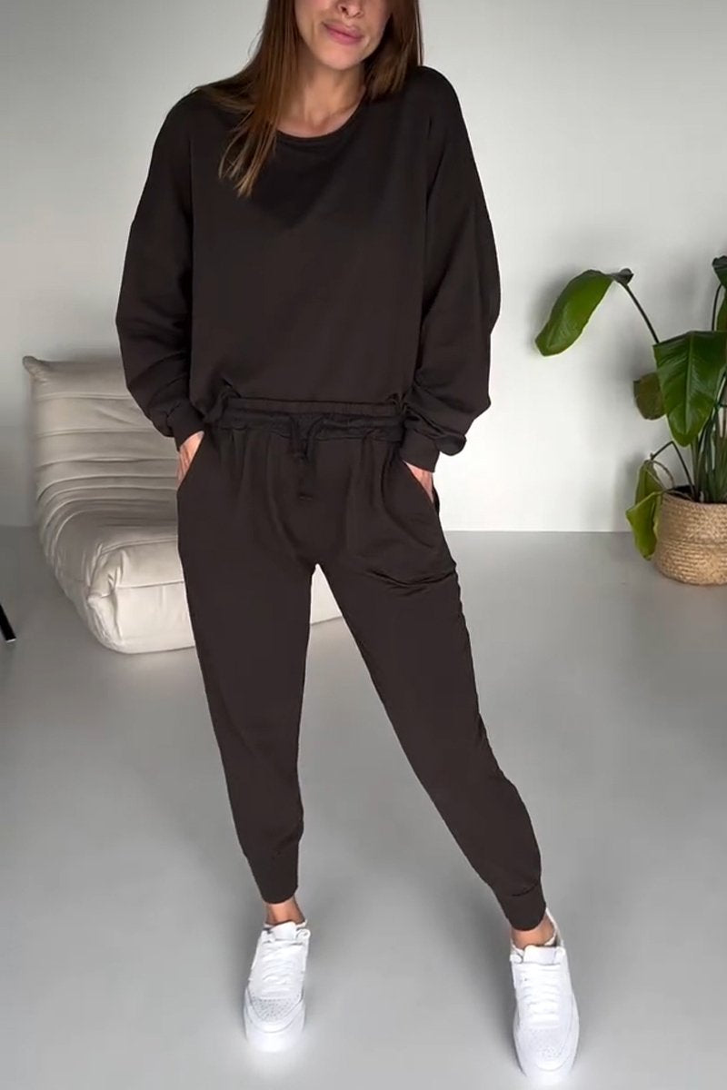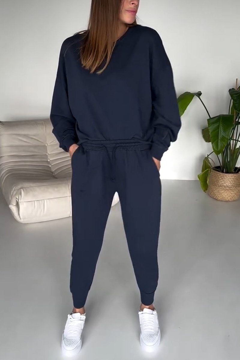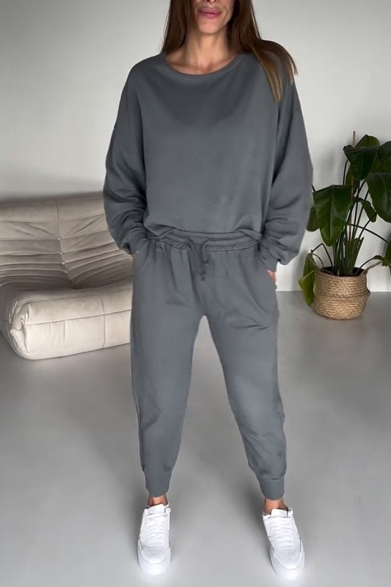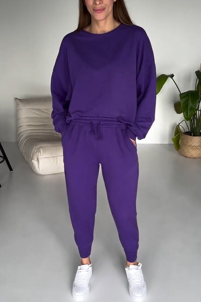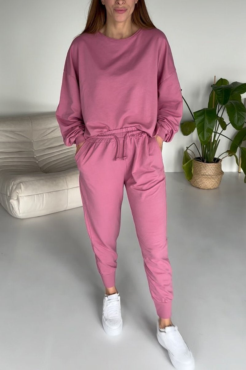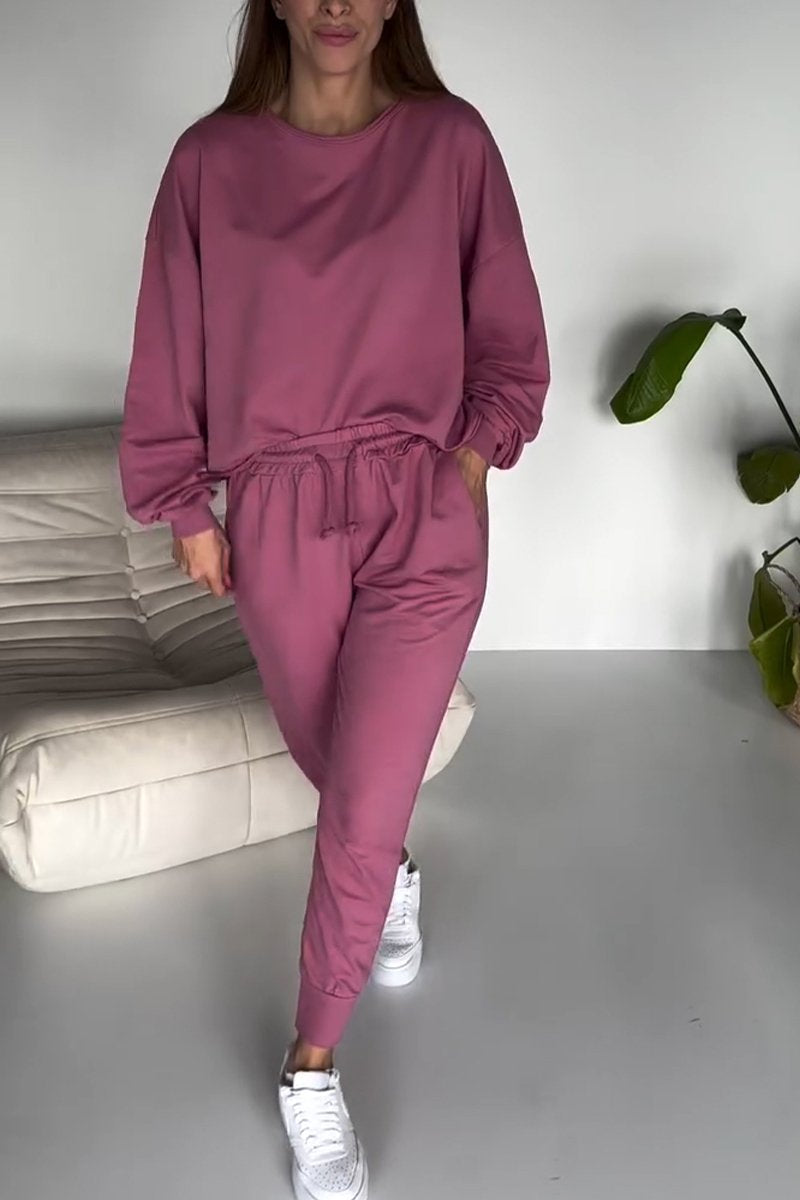 Women's Casual Round Neck Long Sleeve Two Piece Suit