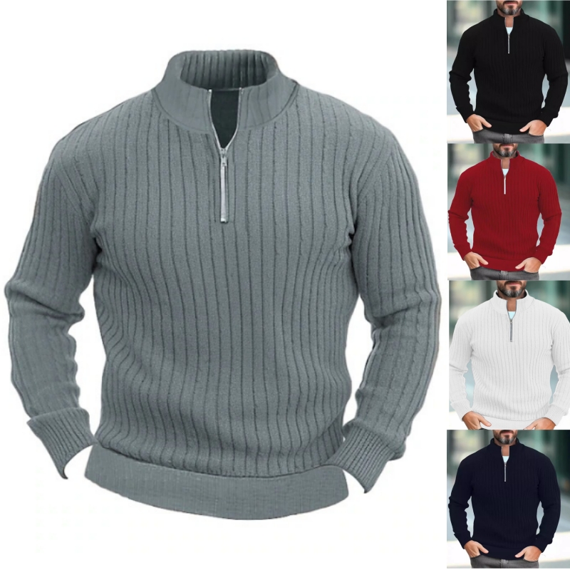 Men's Solid Color Stand Collar Knitted Pullover Sweater