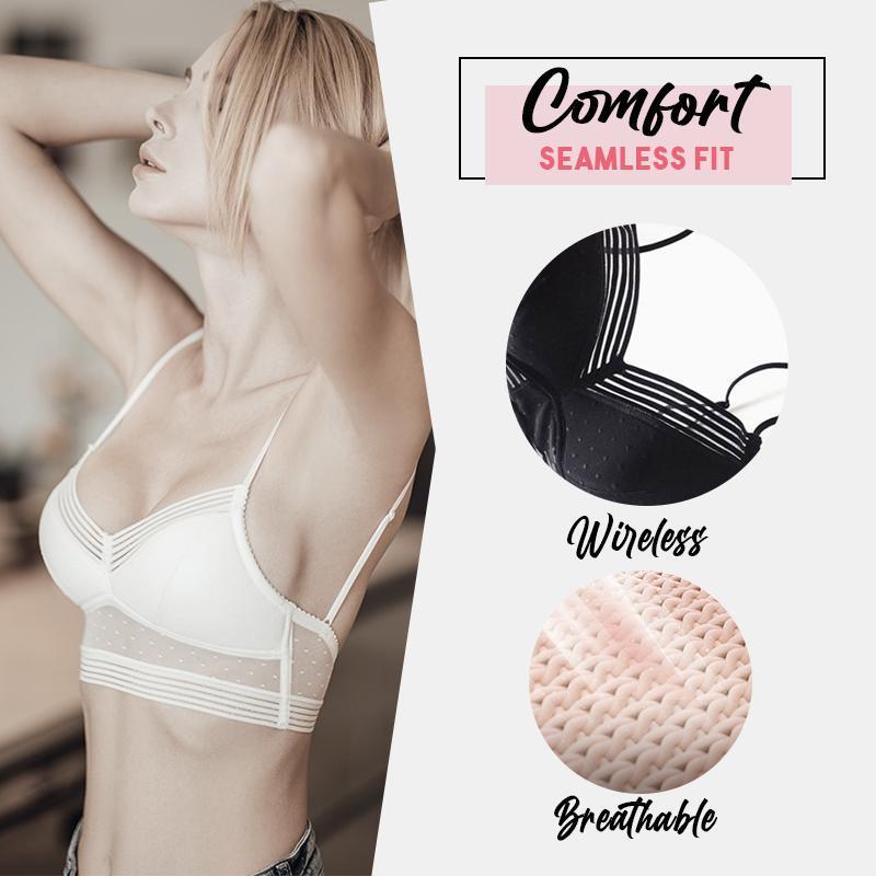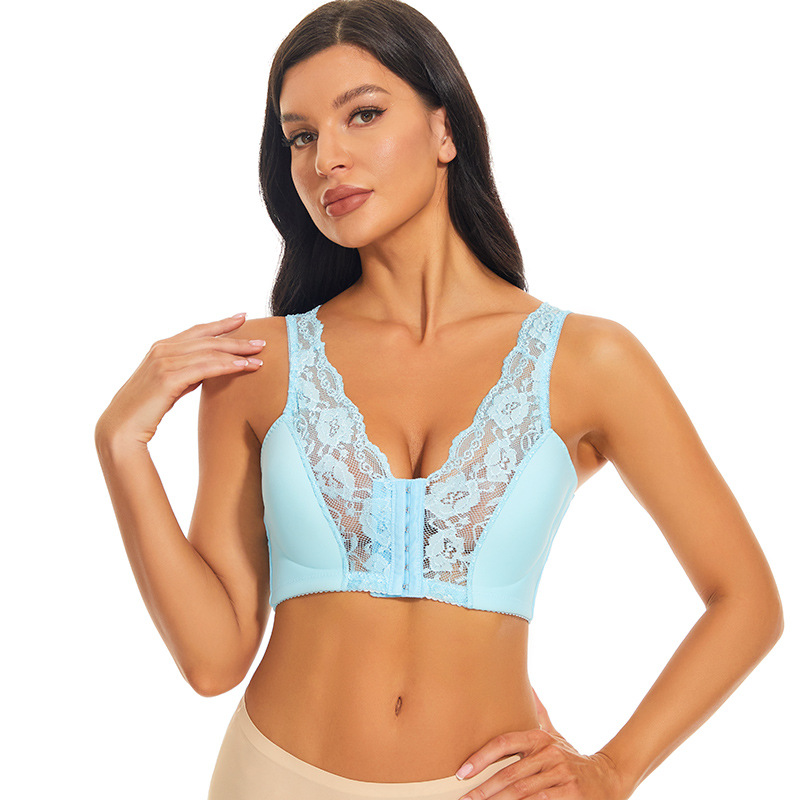 Front Closure Wireless Posture & Back Support Mesh Lace Push-Up Bra