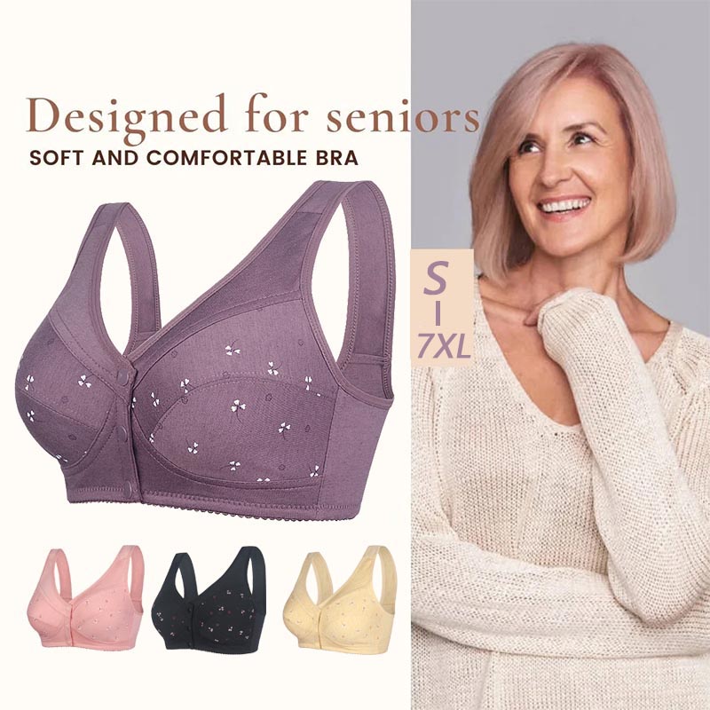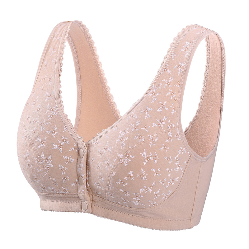 Design for Senior Pure Cotton Front Buckle Floral Bra