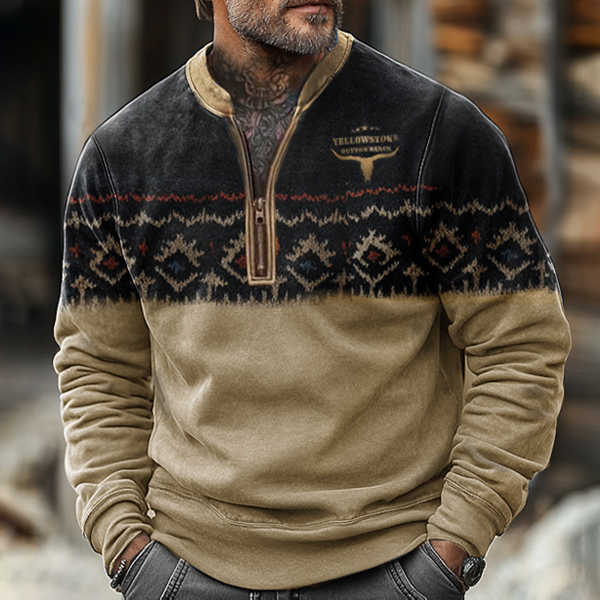 Men's Vintage Vintage Yellowstone Ethnic Geometric Print Ziper Stand Collar Sweatshirt