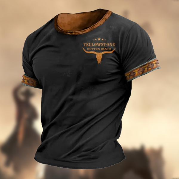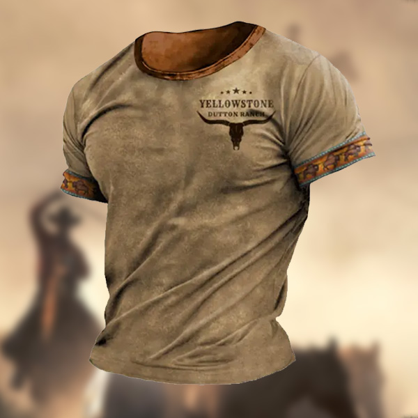 Men's Retro Western Ethnic Yellowstone Printed Pattern Short Sleeve Round Neck T-shirt