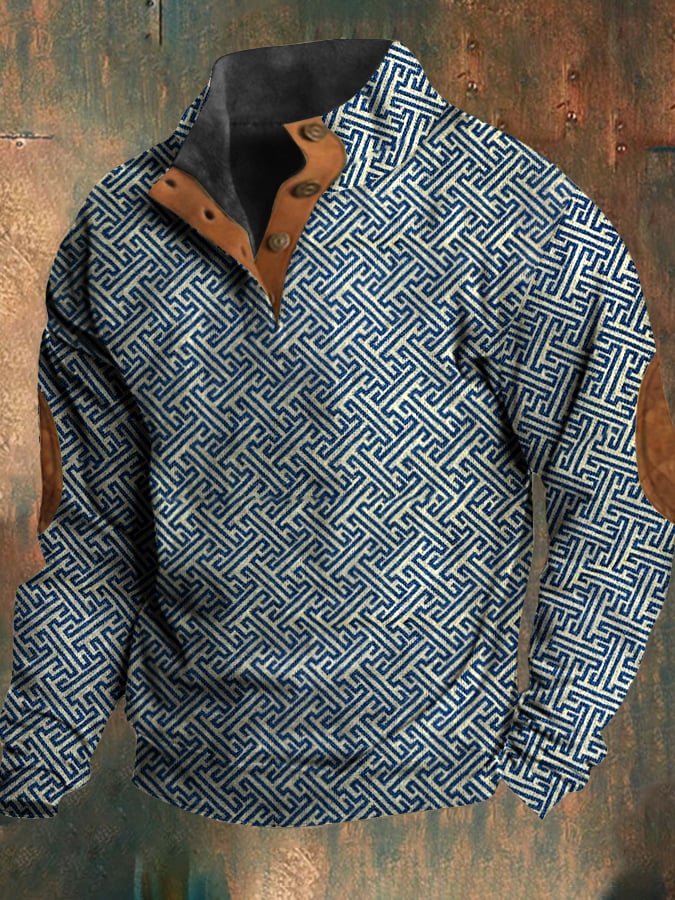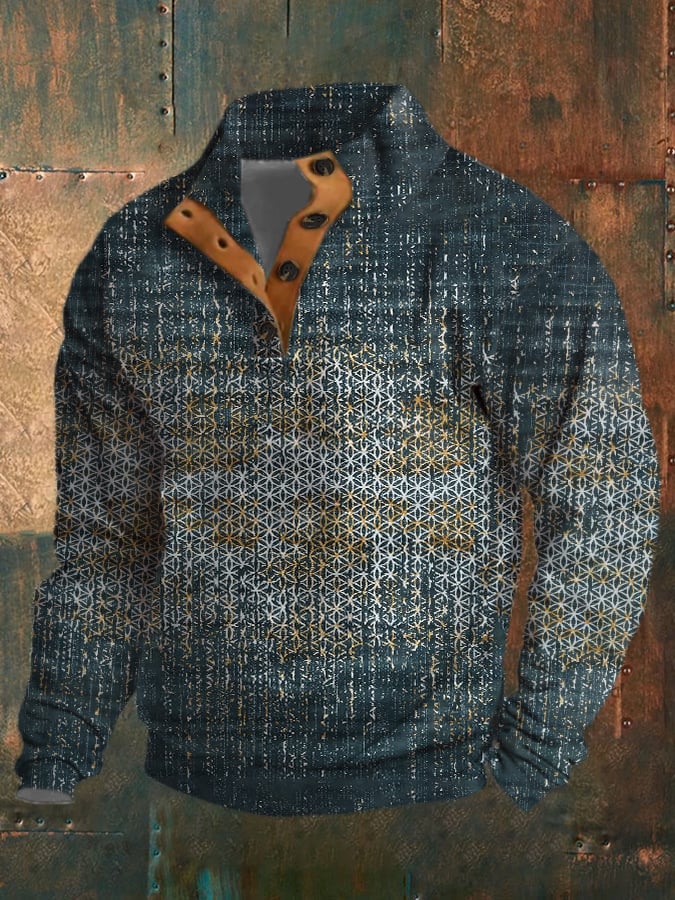 Men'S Casual Printed Buttons Casual Sweatshirt