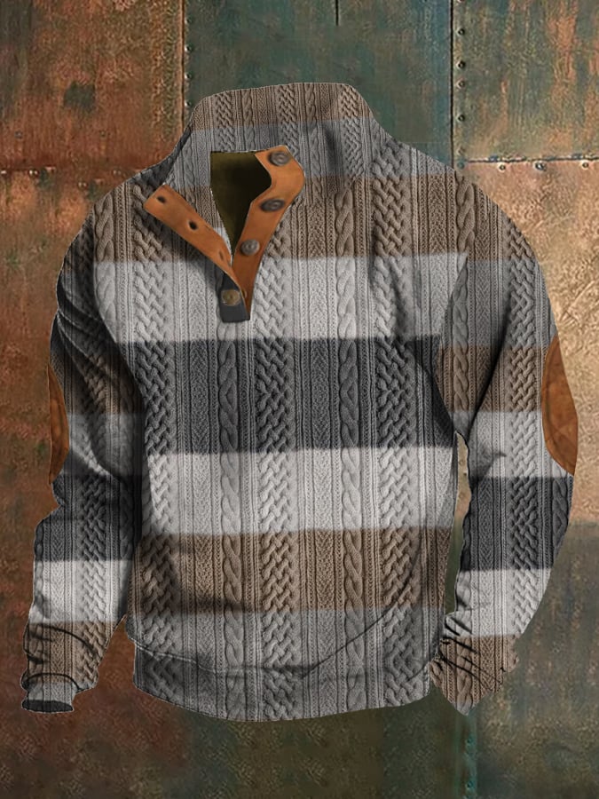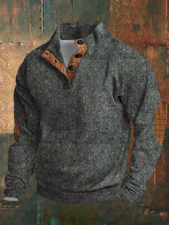Men's Casual Jacquard Loose Half Button Standing Collar Pullover Sweatshirt