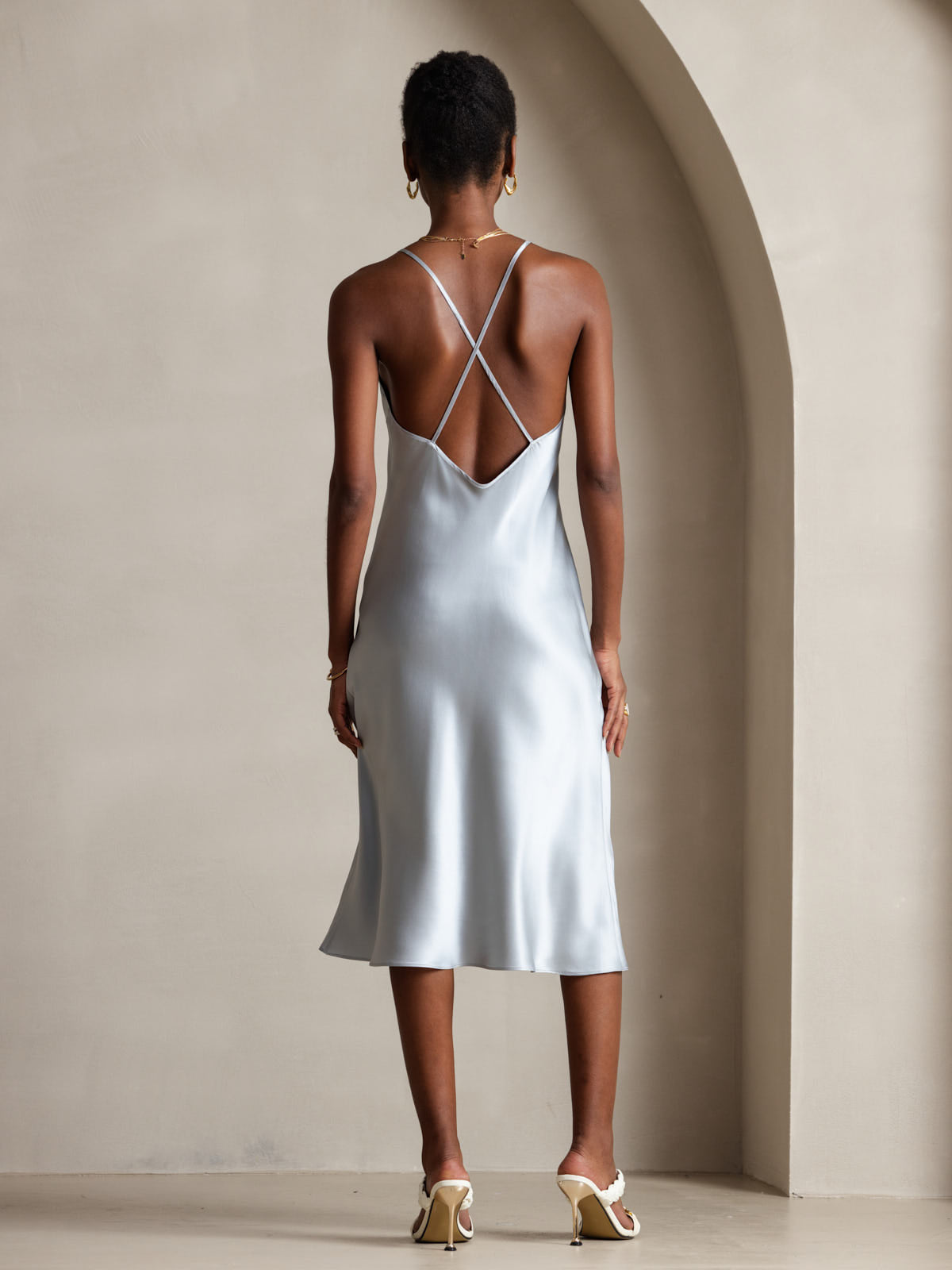 Pure Silk Spaghetti Strap Criss Cross Back Dress