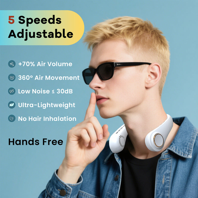 Ultimate Neck Cooling Fan. Portable Bladeless Neck Fans. Upgrade 360° Airflow. Ultra Quiet. 5 Speeds