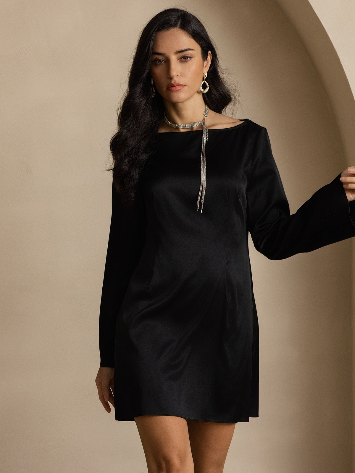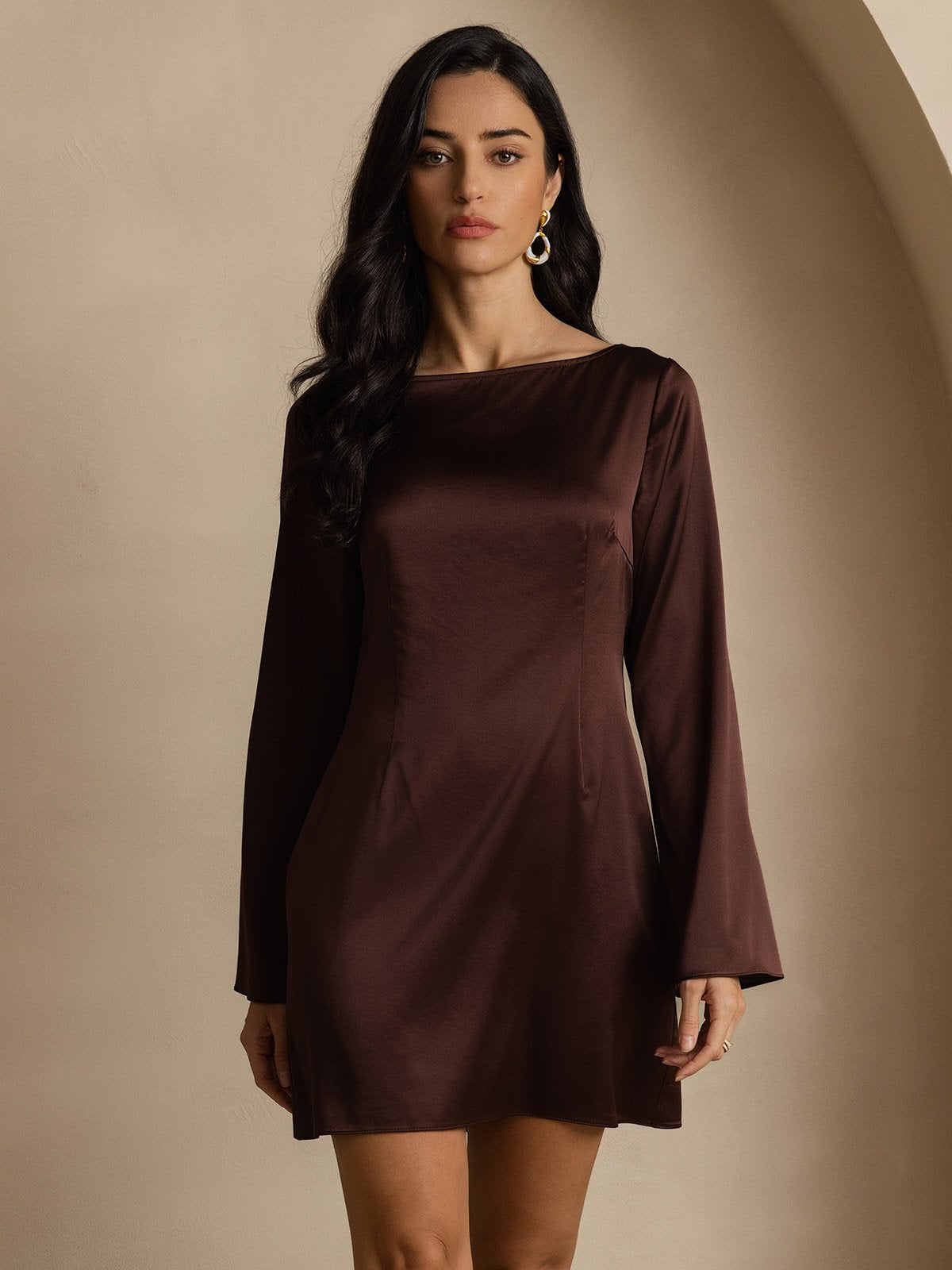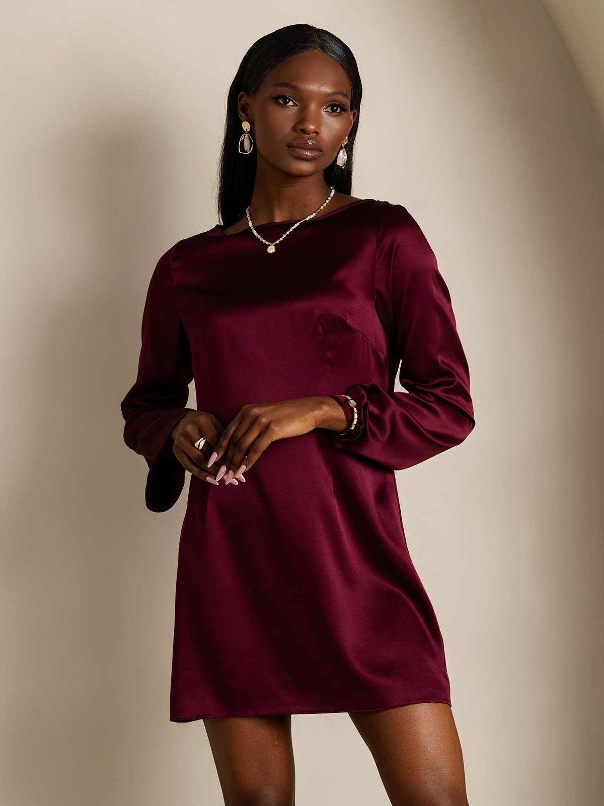 19Momme Silk Elegant Long Sleeve Dress