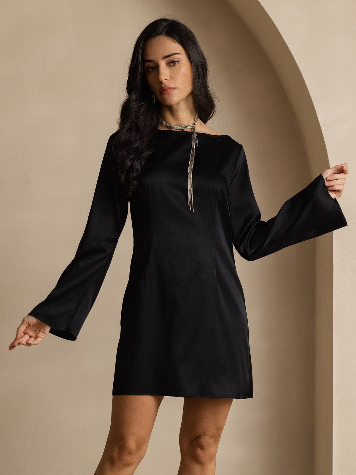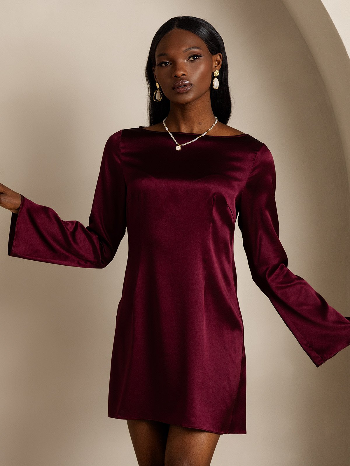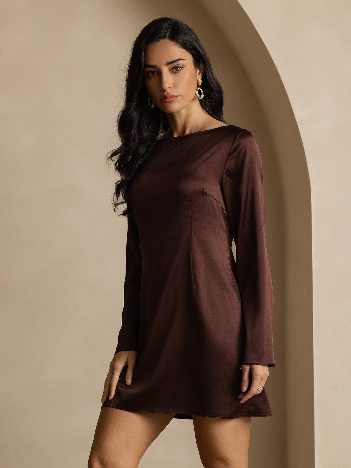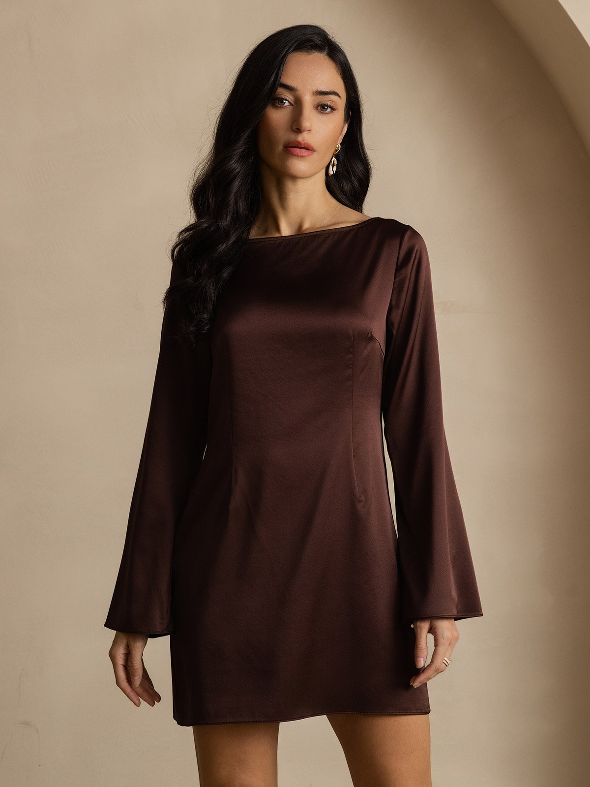 19Momme Silk Elegant Long Sleeve Dress