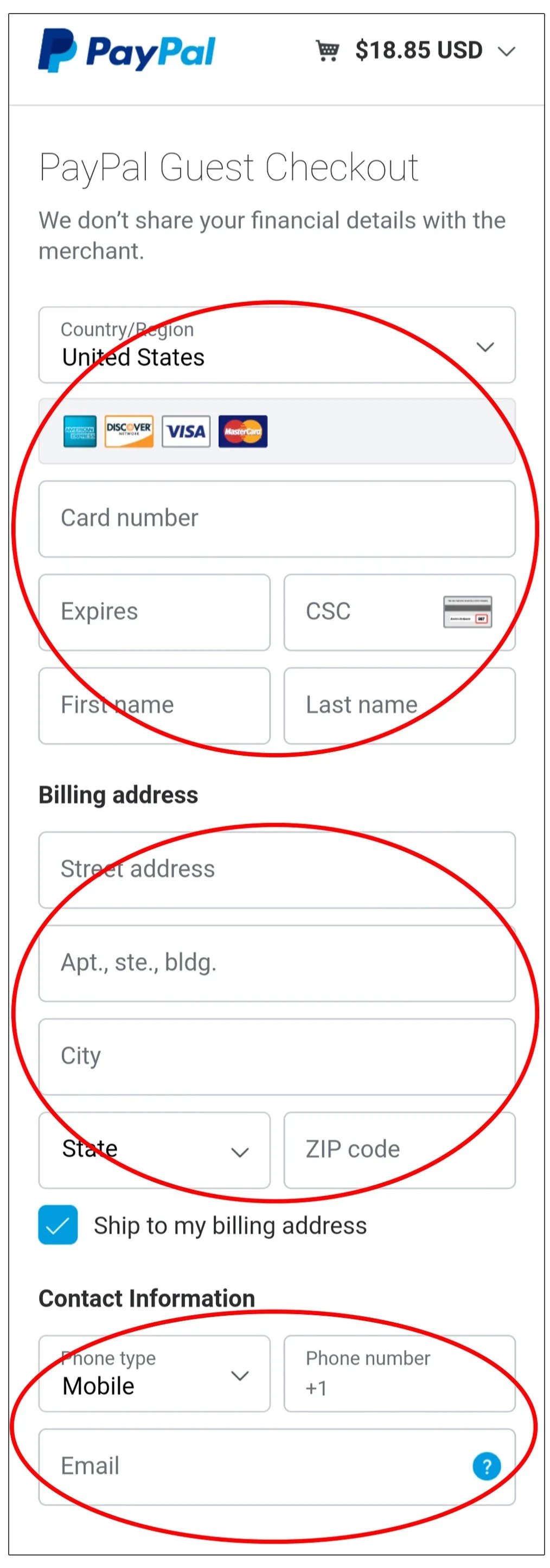 Enter your Payment details, your Billing Address, and your Contact Information.