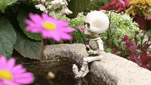 Edgy Garden Wall: Position the Fishing Skeleton Garden Accessory on the edge of a garden wall or retaining wall for a playful and unexpected element. It will appear as if the skeleton is angling from above, creating a fun and unique visual experience.
