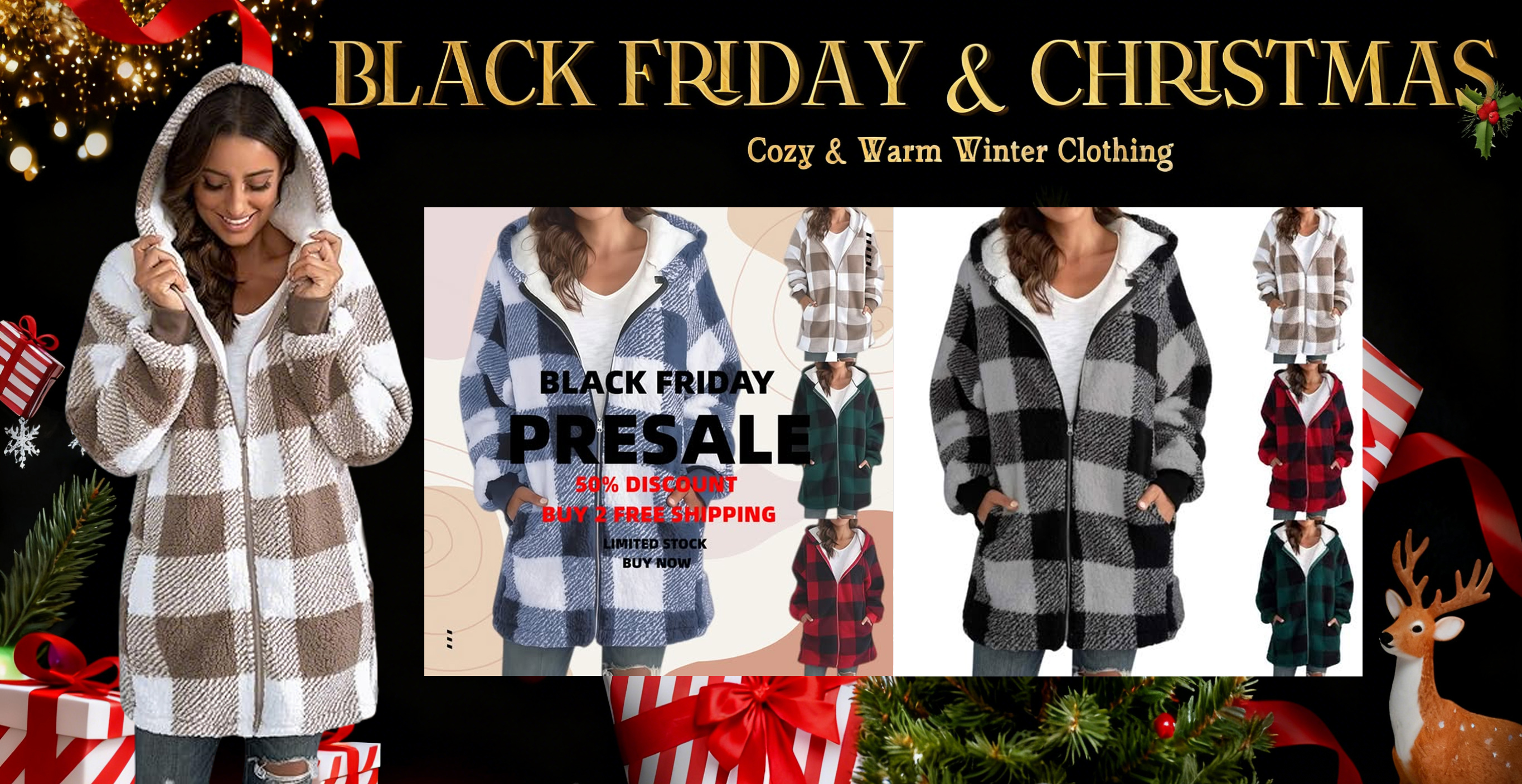 Women Oversized Hoodie Plaid Loose Overcoat (Buy 2 Free Shiping)
