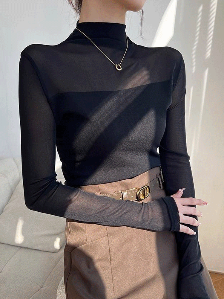 mesh shirt women sheer tops womens mock neck tops long sleeve turtleneck women going out top