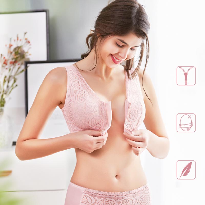 Mother's Day Gift 40% Off 🔥-Front Zipper Lace Full Coverage Wire-Free Bra-Plus Size