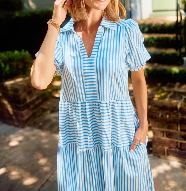 🔥 Two for $69.99 Only + free shipping🔥Special price of $37.99( Taxes included ) for a limited time, if the price goes back to$75.98 it means the event has ended!!! Don't miss out!The V-Neck Pleated Short Sleeve Striped Shirt Dress is a delightful blend of sophistication and sweetness that's perfect for any occasion. Falling gracefully at midi-length, this dress exudes timeless charm, making it an ideal choice for both casual outings and special events. The dress features a classic collar, adding a touch of elegance, while the smocked short puff sleeves provide a playful and feminine twist.Features:Featured pocketsPleated short sleevesFolded collarLayered skirtCottonWashing instructions:Machine washableMachine wash coldHang to dryIron if necessarySIZE CHART:🔒 100% Risk-Free Purchase🔥If you bought it and felt that it is not for you, don't worry. Just shoot us a message and we will make it right by offering you a replacement or refund. 100% Simple Risk-Free process.* LIMITED stock, Click ADD TO CART before stock runs out!