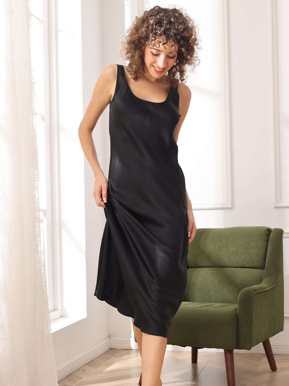 • Details: Introducing our graceful silk long dress with a sleeveless round neck. Made from luxurious silk, this dress embodies elegance and sophistication. Whether it’s a formal event or a special occasion, this timeless piece effortlessly enhances your style and beauty. Elevate your wardrobe with this versatile and exquisite silk dress that guarantees a show-stopping look.