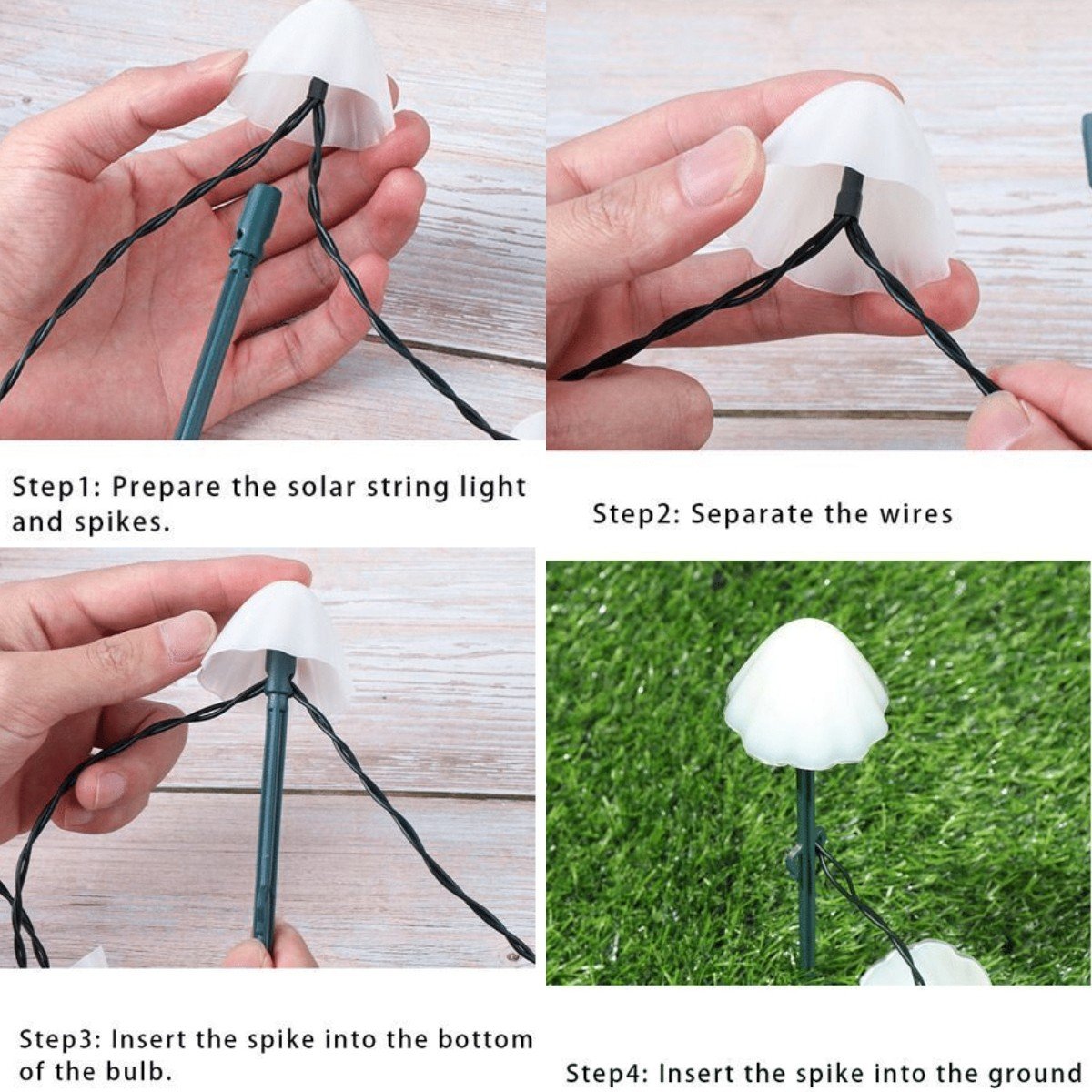 Solar energy: Mushroom light The mushroom light is powered by an amorphous solar panel, which is eco-friendly and economic, perfect for outdoor usage, easy to collect the solar power in your garden.