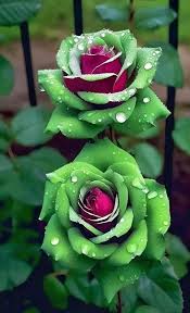 Rubin-Grüne Zwillingsrosen - Ein Funkenmagie im Garten! 🌹💚❤️