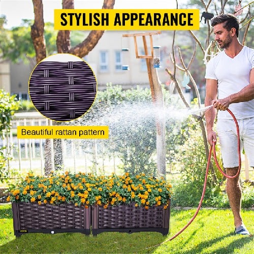 With a stylish rattan pattern look, the raised planter box is a perfect decoration for your garden, patio and yard, bringing you a natural and colorful life.