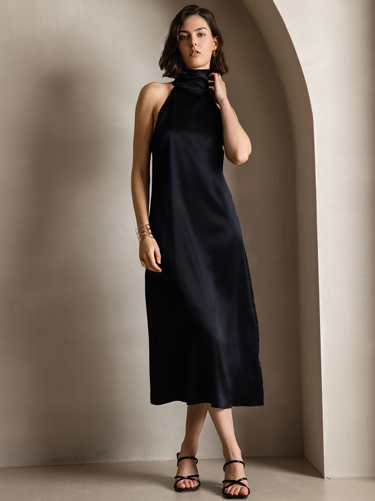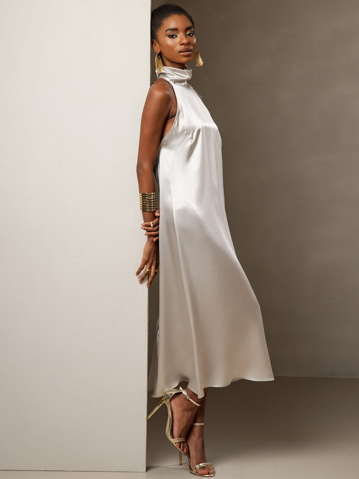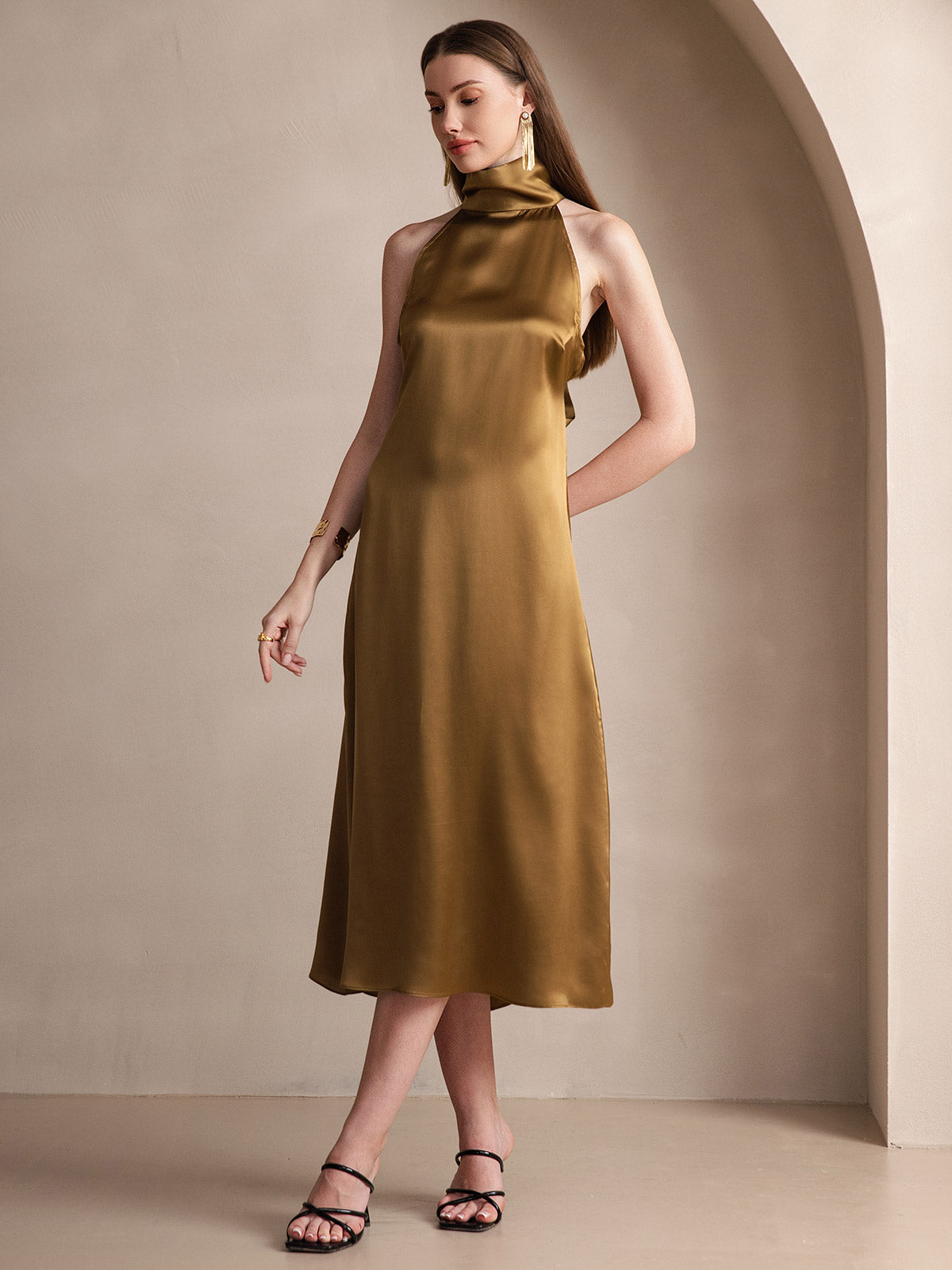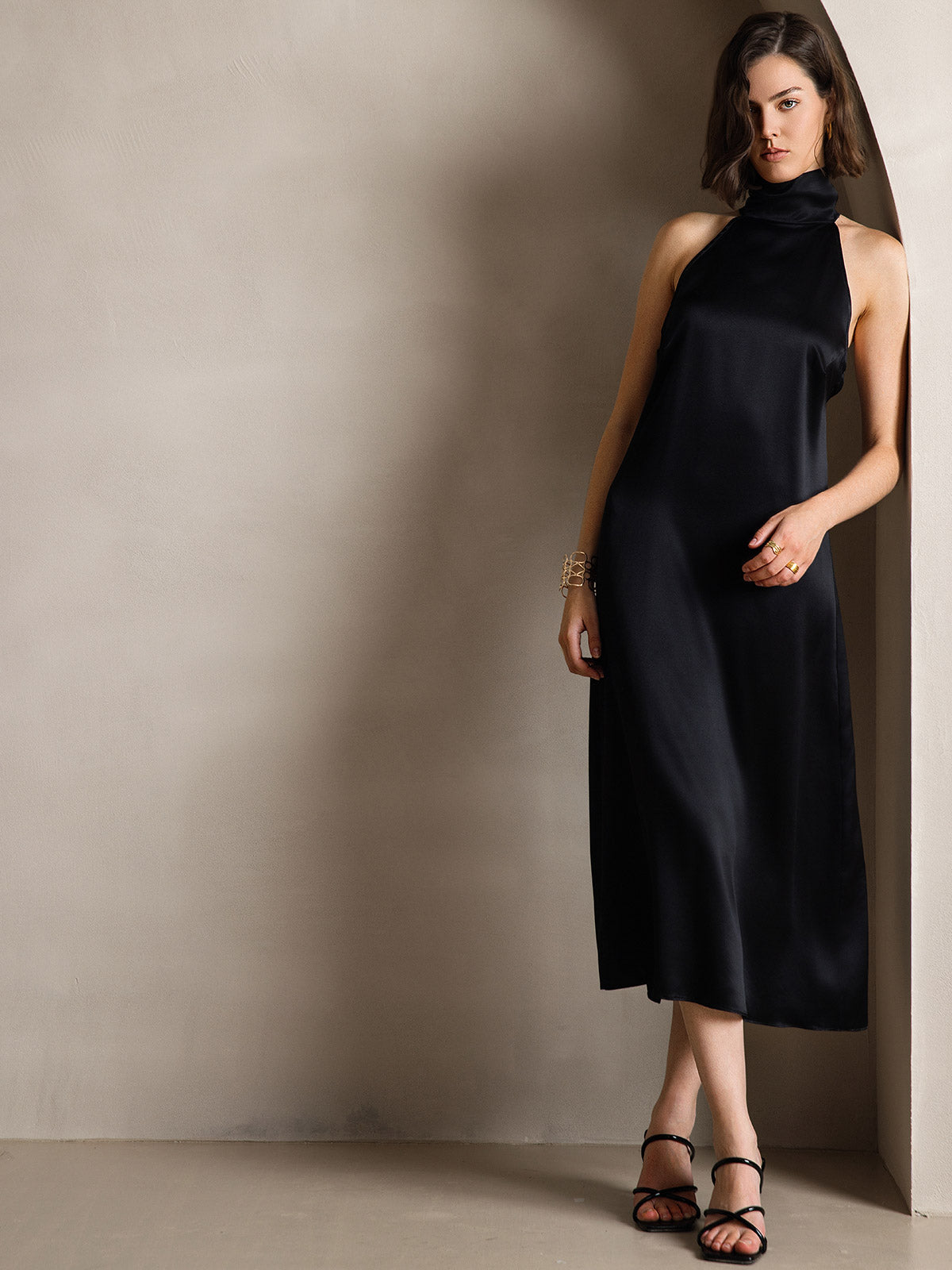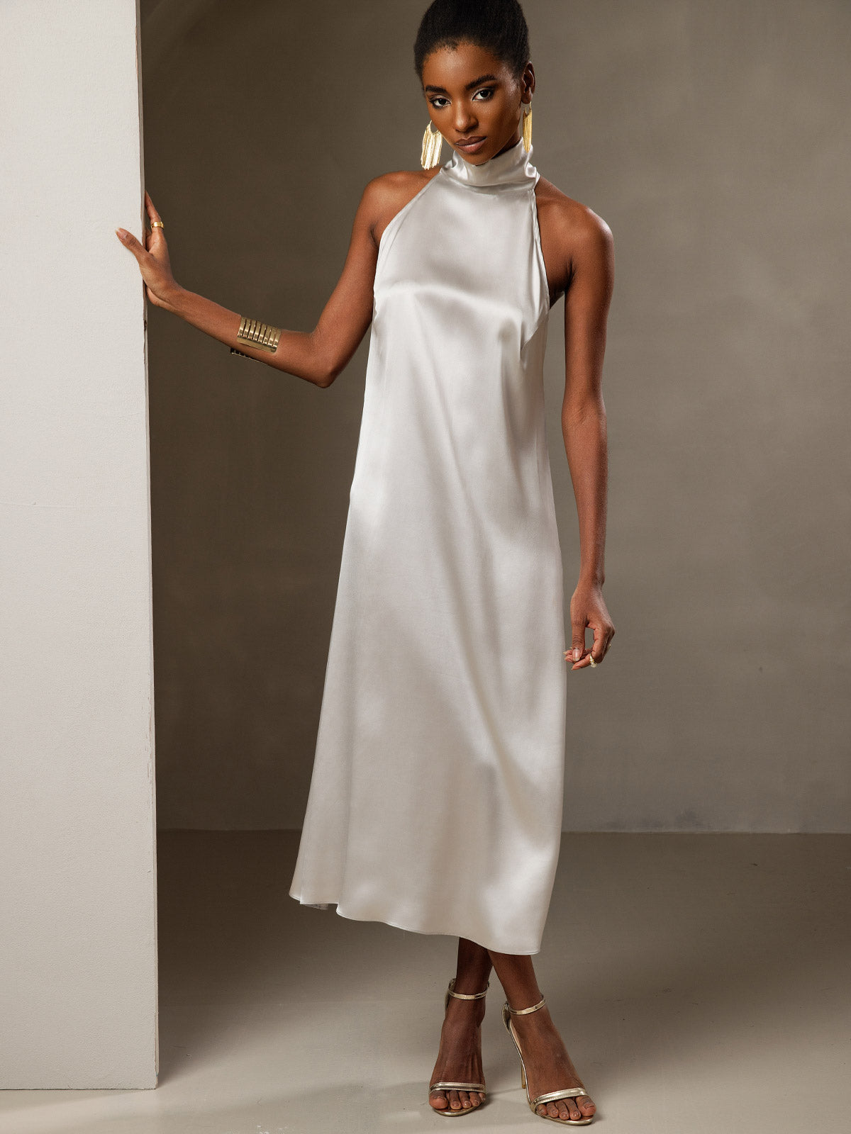 Details: Elevate your style with our chic off-shoulder dress featuring a high-neck design and a uniquely styled back. Perfect for wearing alone or layering, this versatile piece adds elegance to any occasion. Embrace sophistication and charm with a dress that effortlessly enhances your wardrobe.