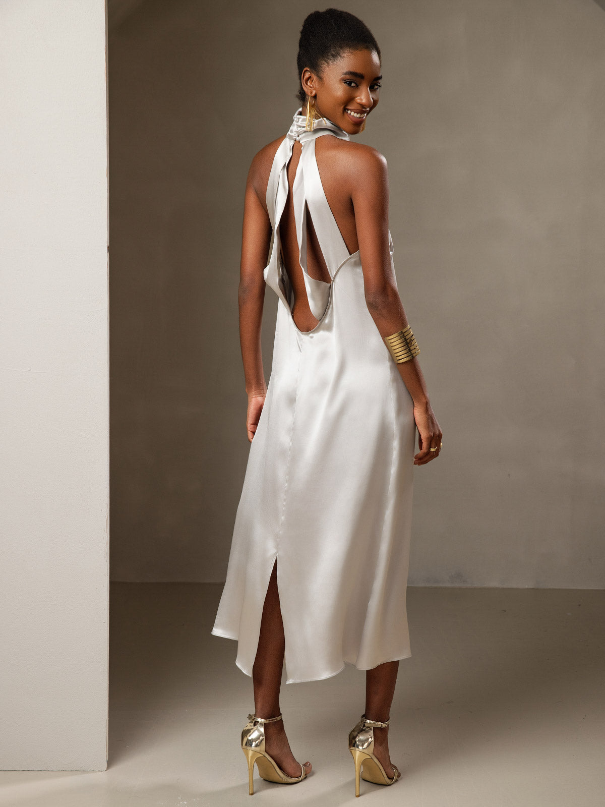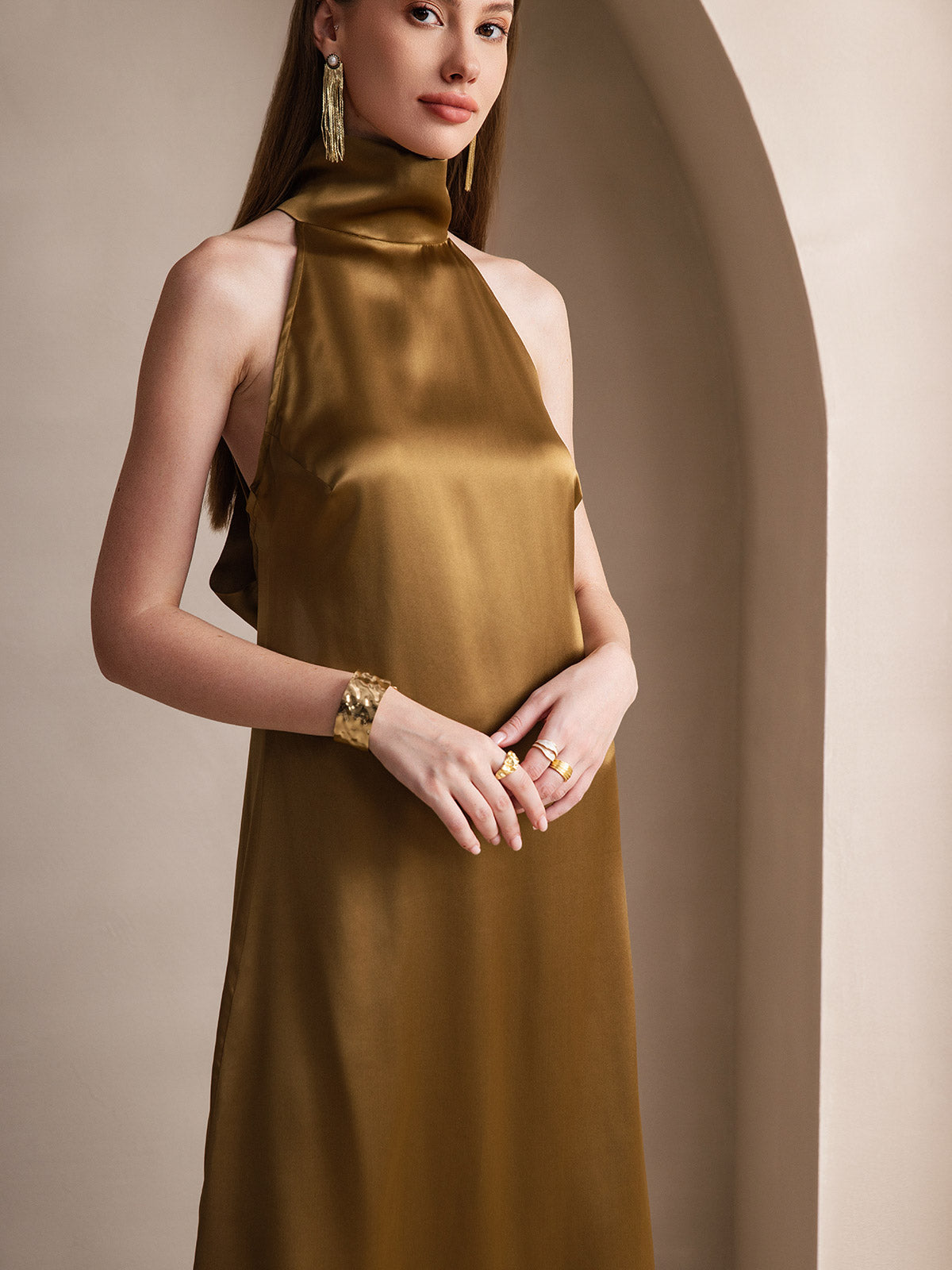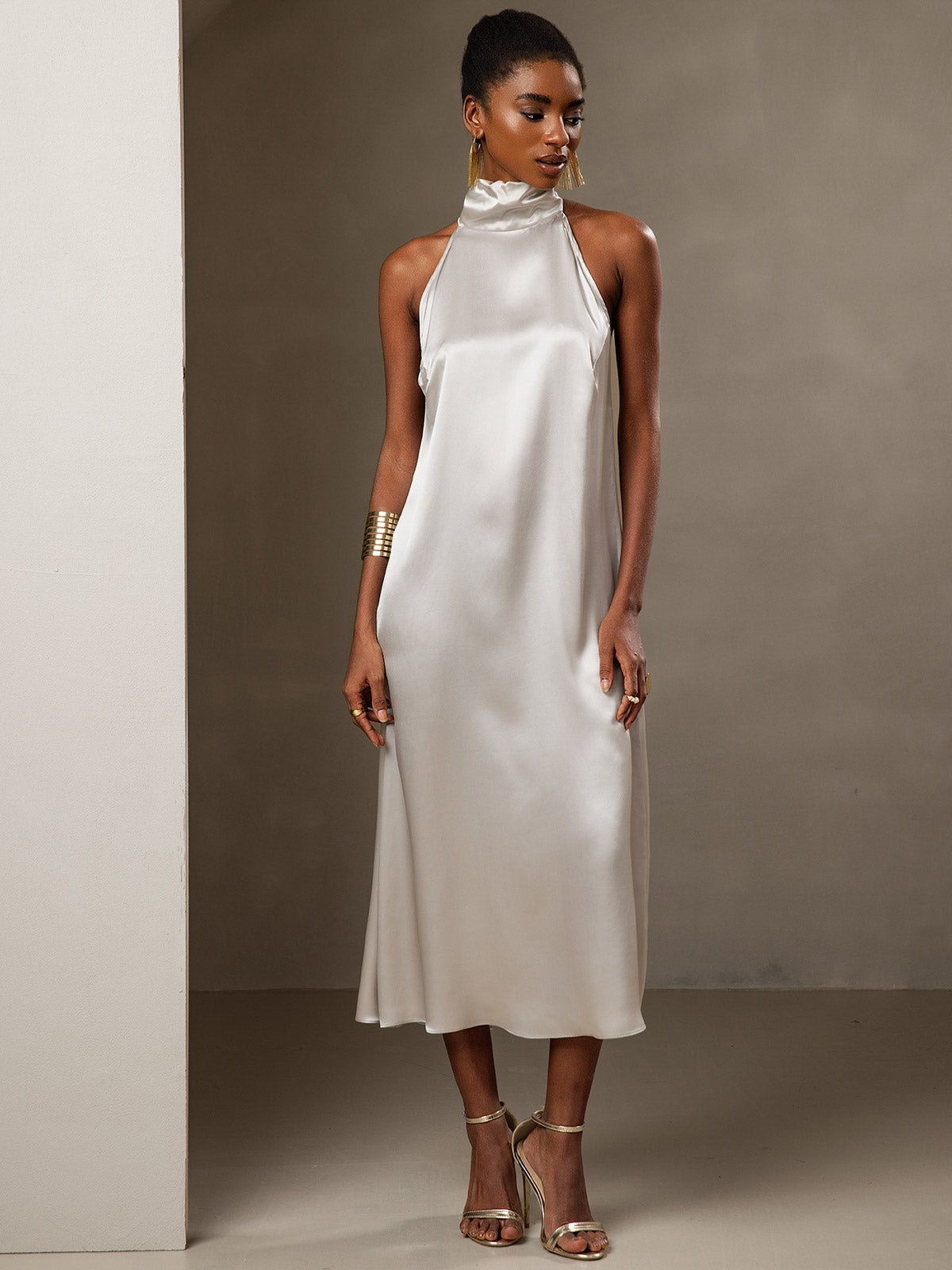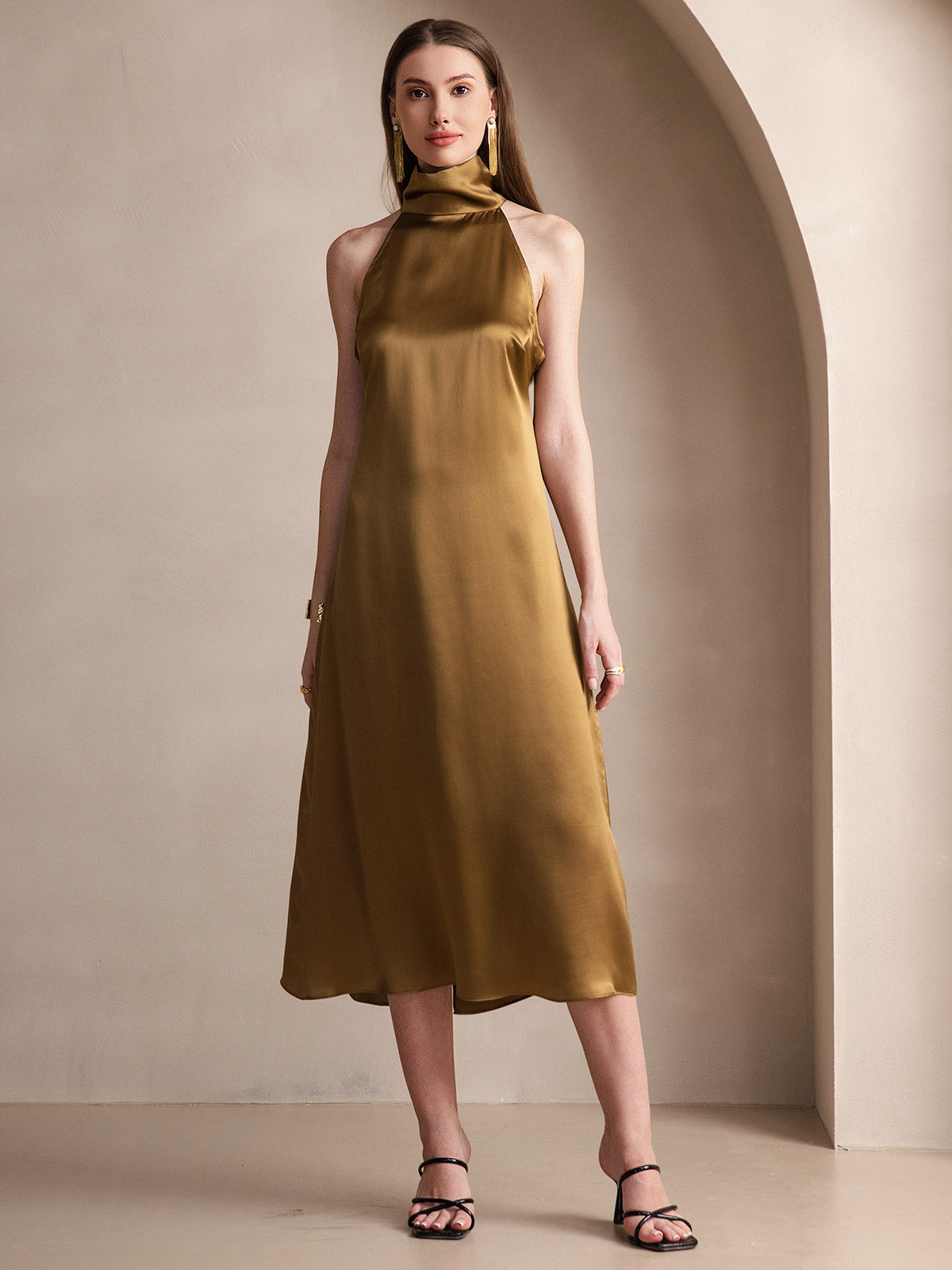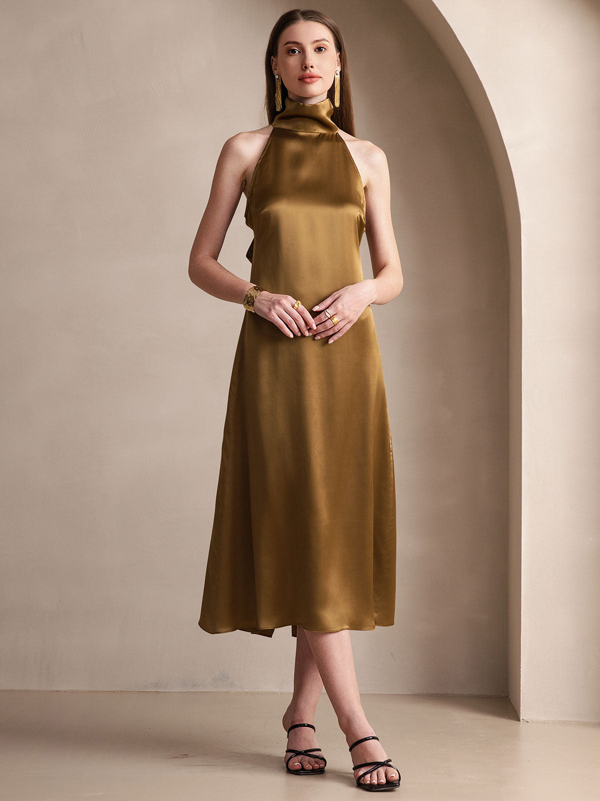 Details: Elevate your style with our chic off-shoulder dress featuring a high-neck design and a uniquely styled back. Perfect for wearing alone or layering, this versatile piece adds elegance to any occasion. Embrace sophistication and charm with a dress that effortlessly enhances your wardrobe.