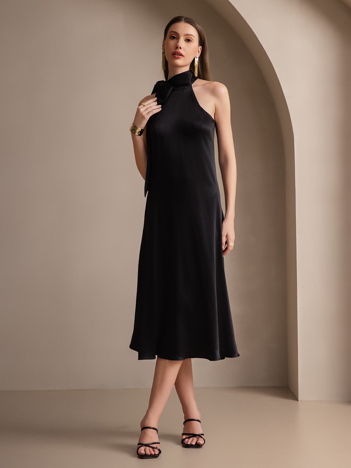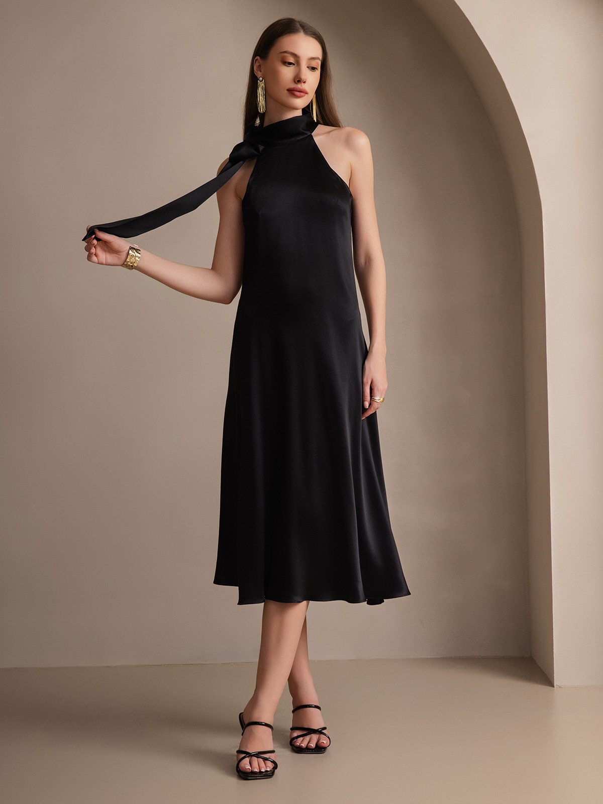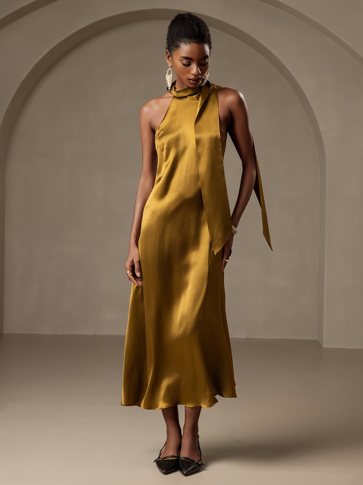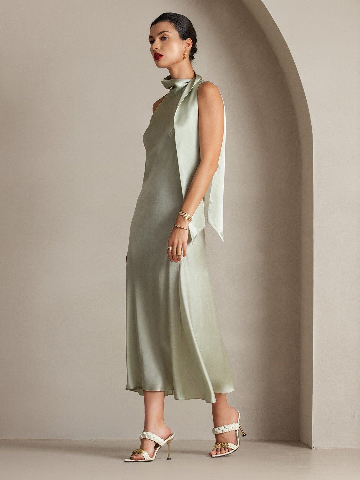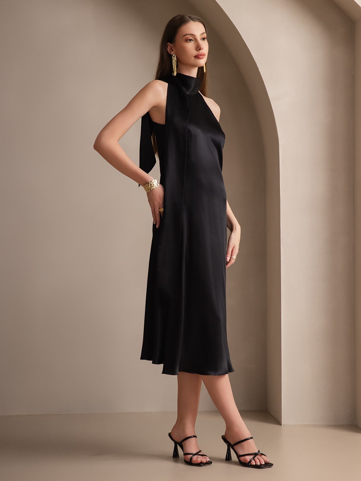 19Momme Silk Tie Neck Maxi Dress