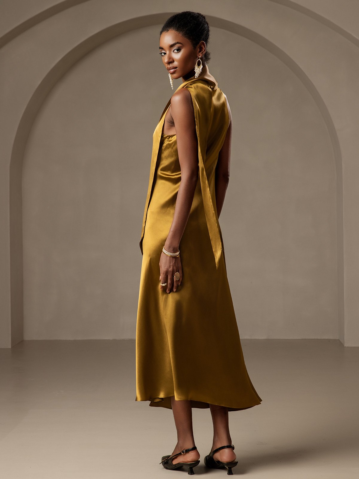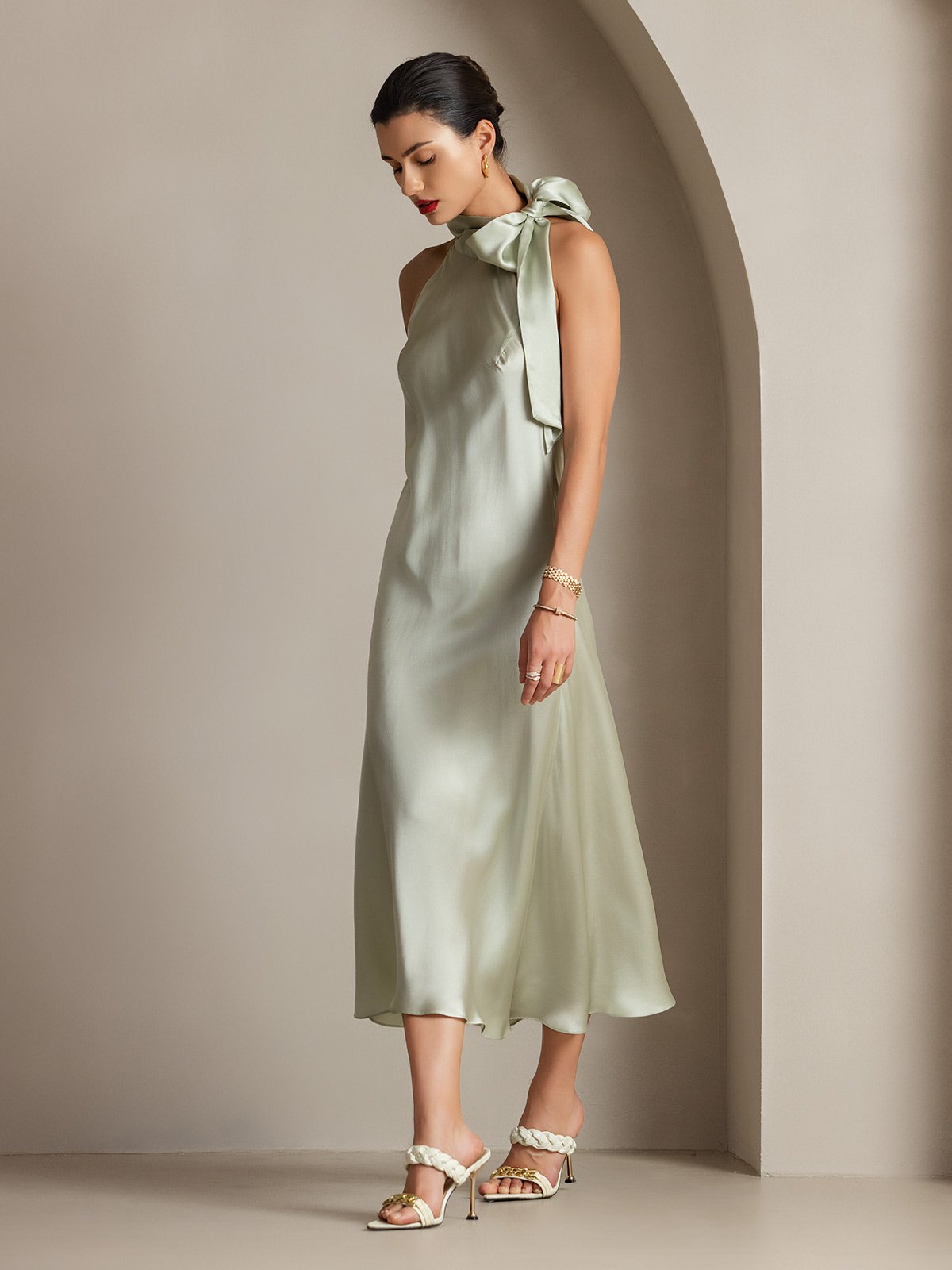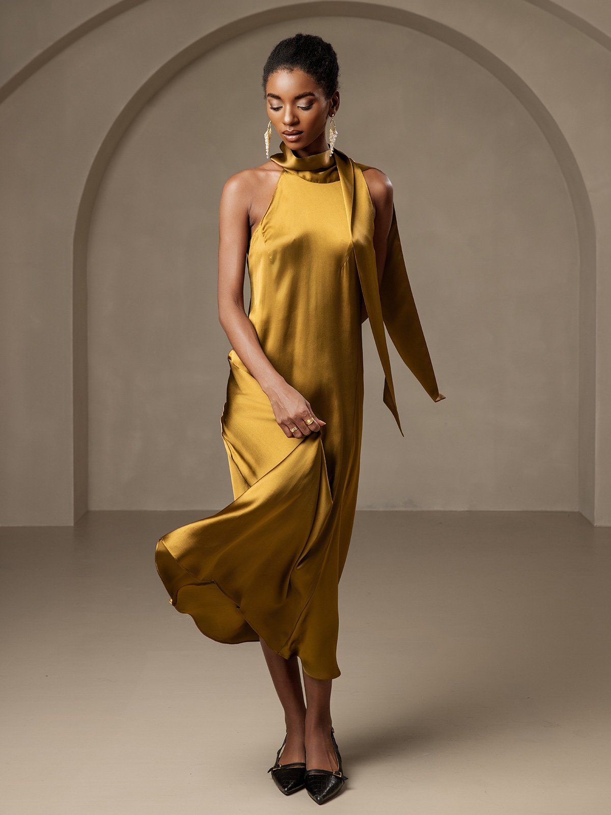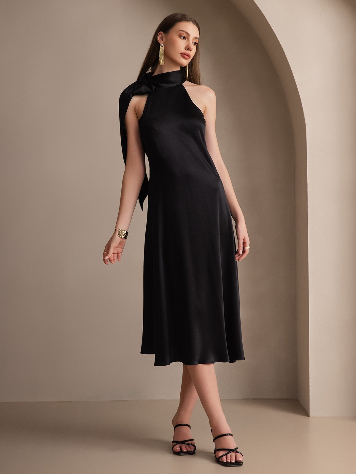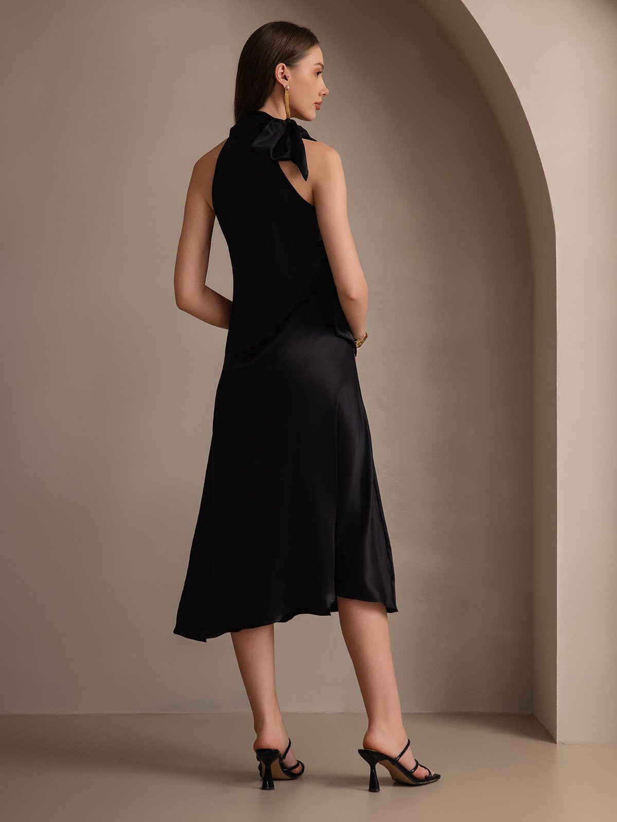 19Momme Silk Tie Neck Maxi Dress