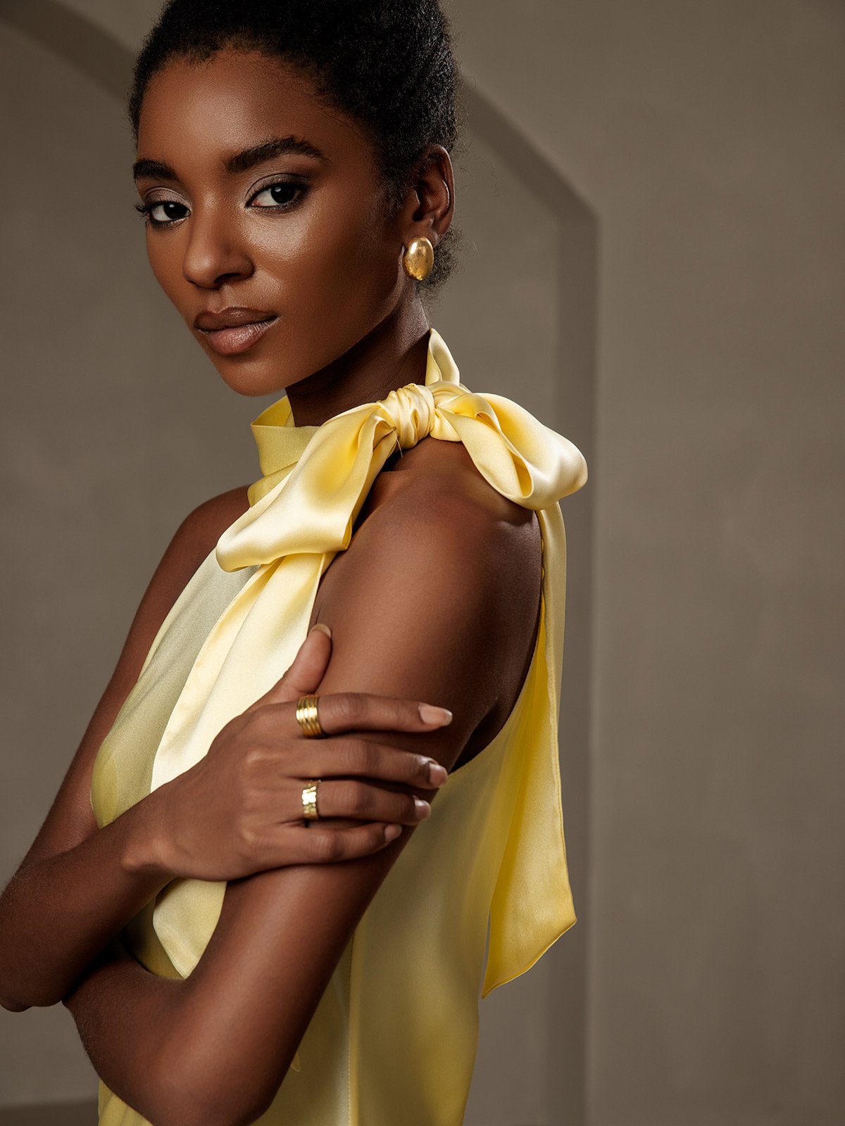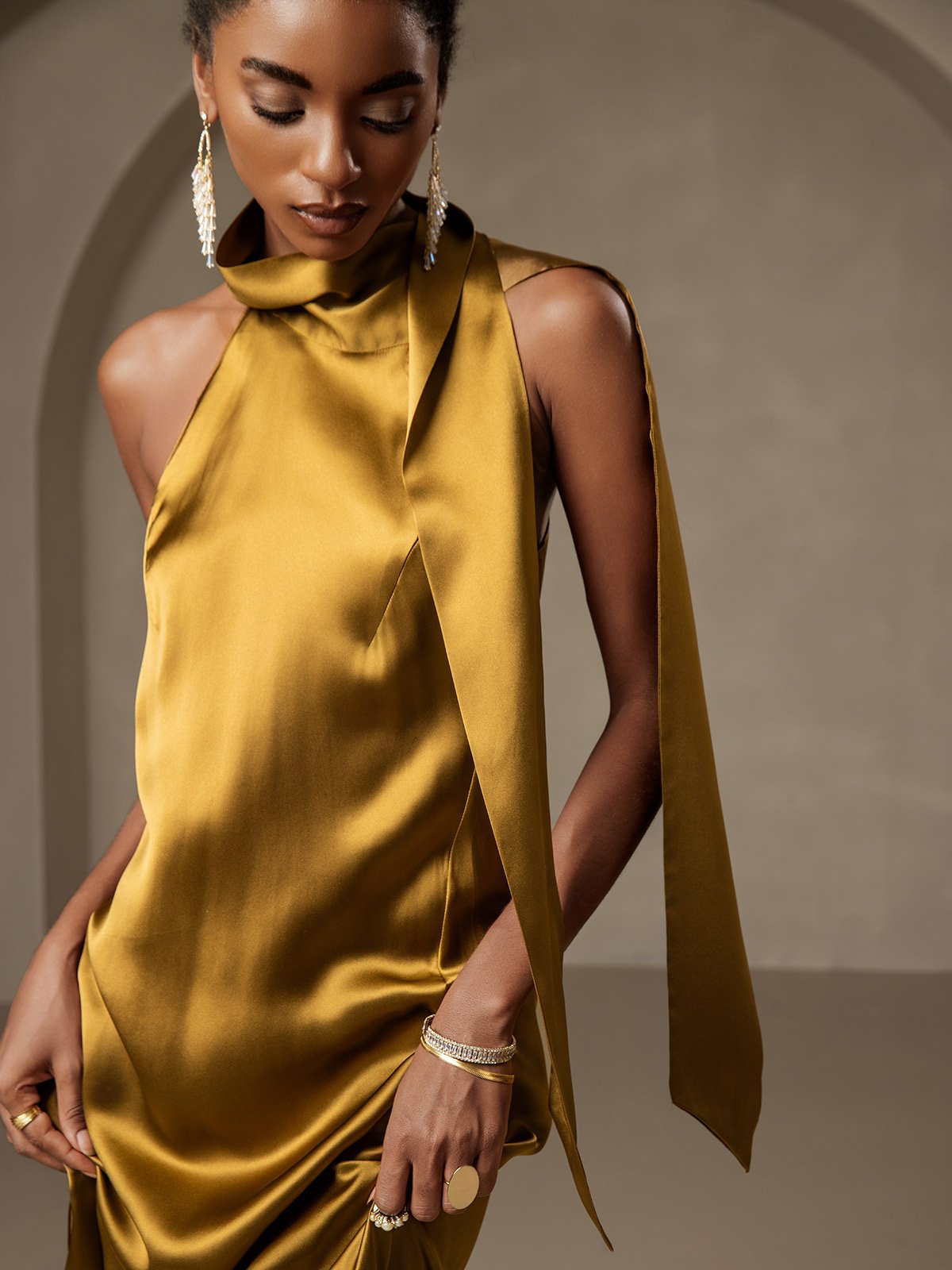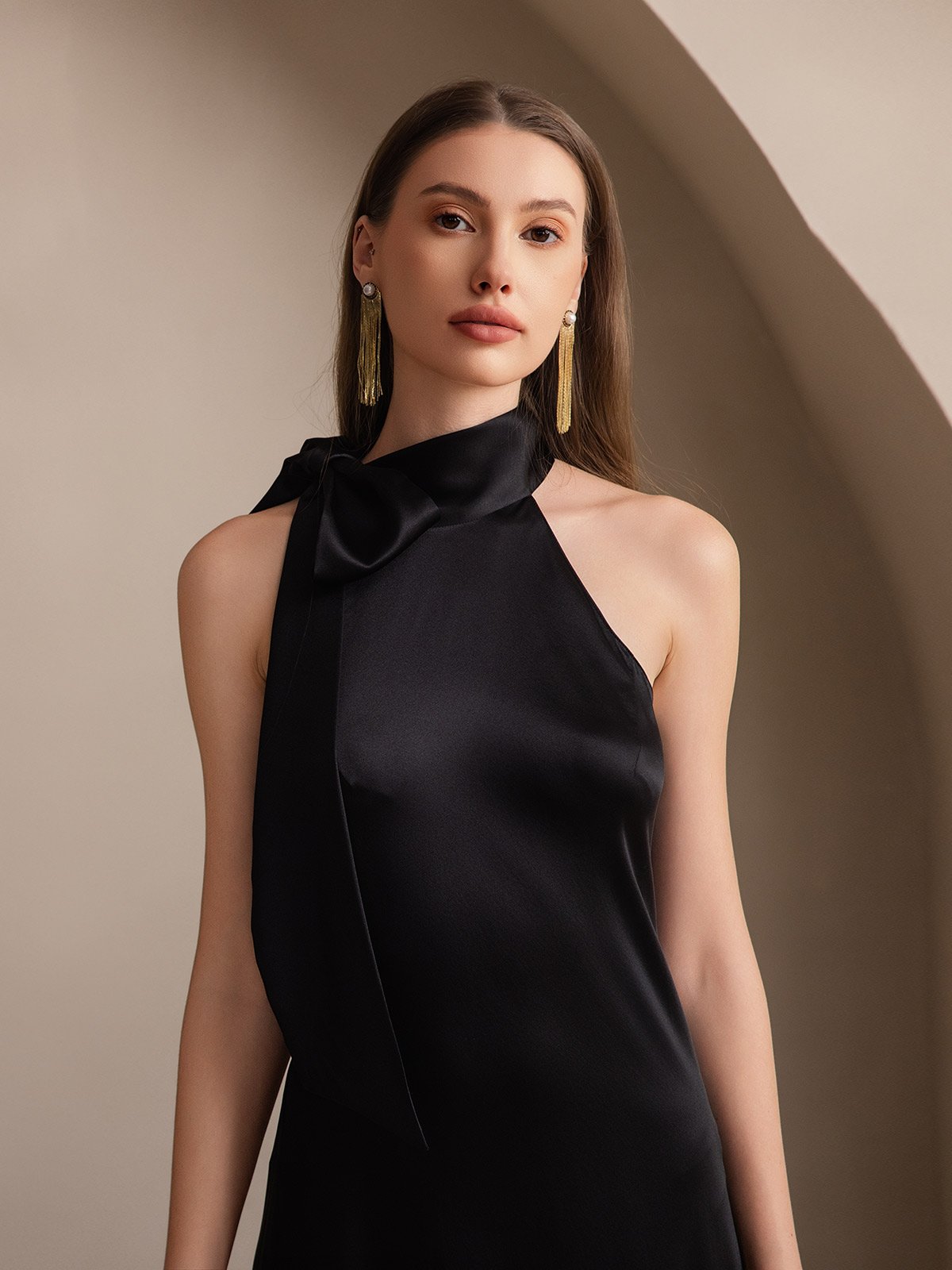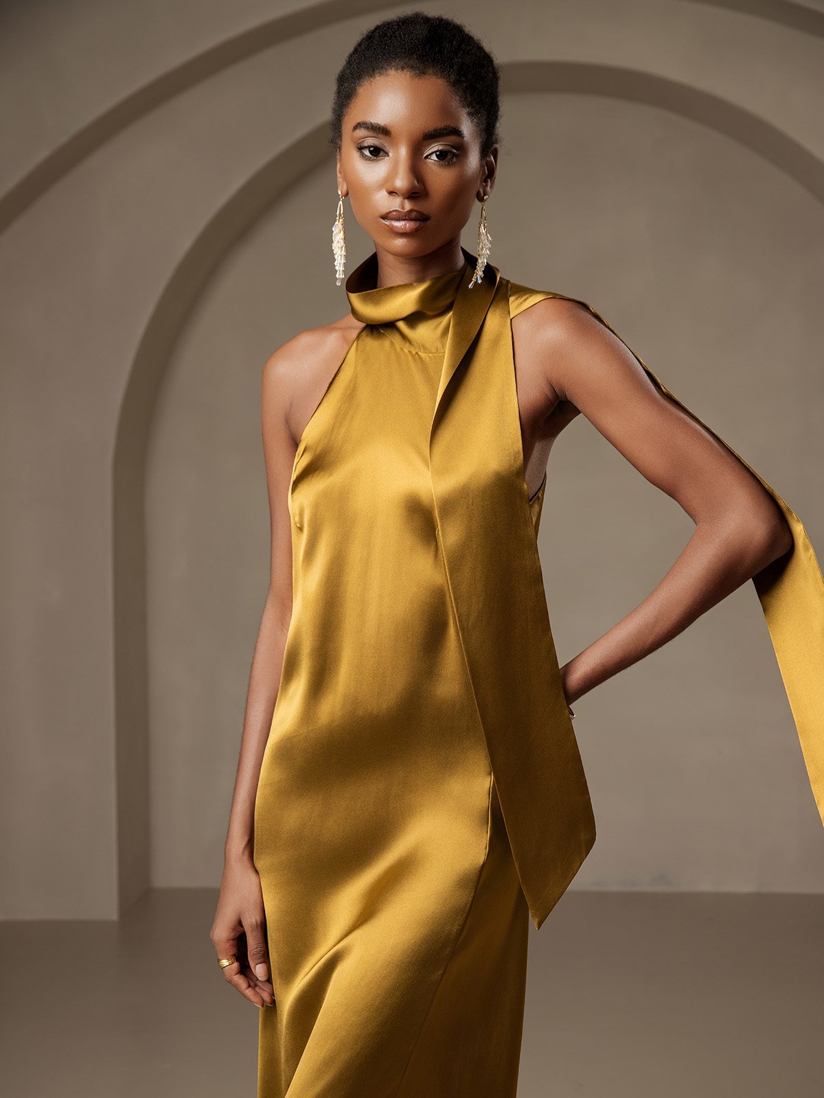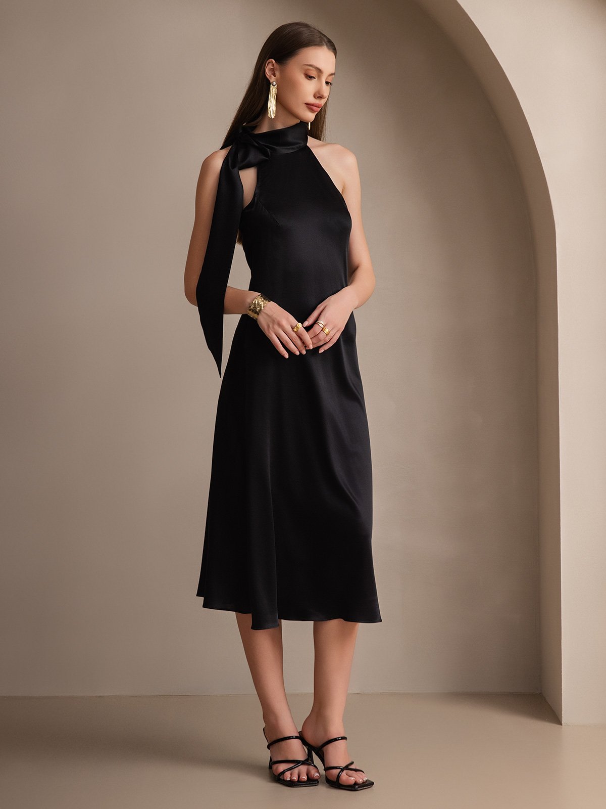 19Momme Silk Tie Neck Maxi Dress