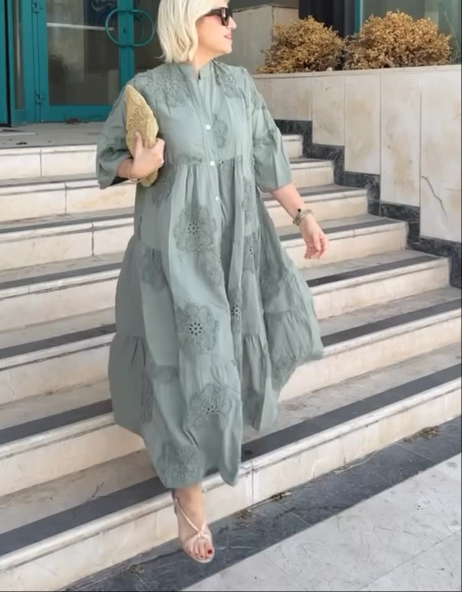 Timeless Elegance: Solid color imported embossed scallop cotton dress