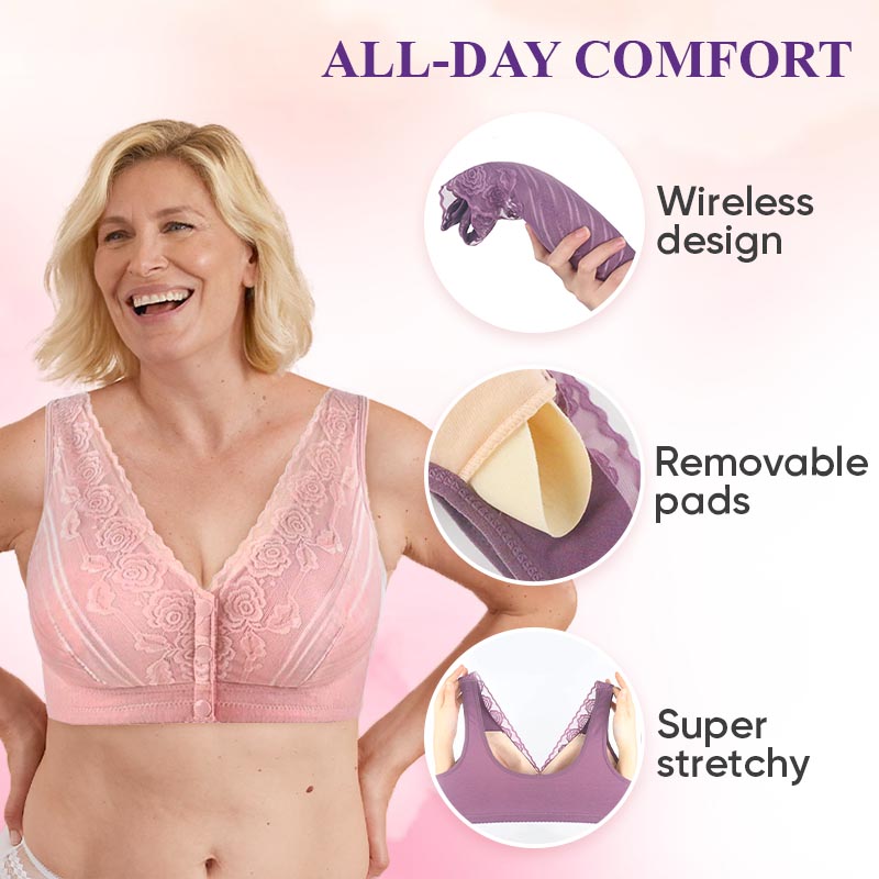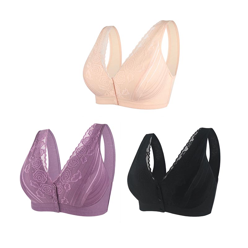 Summer new front buckle women's lace no steel ring wide shoulder strap large size bra