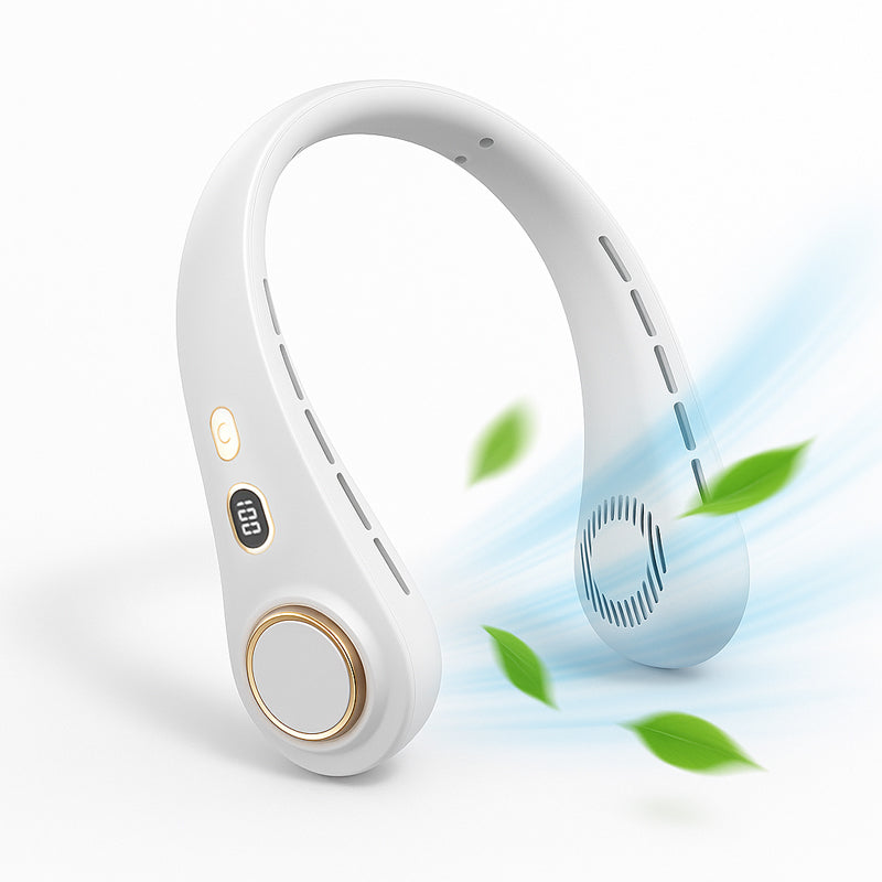 Experience advanced cooling with the TWS Neck Fan. featuring a bladeless design for safety and comfort. Its upgraded 360° airflow ensures consistent. refreshing air circulation around your neck. Ultra-quiet operation lets you stay focused without distraction. while five adjustable speeds provide customizable cooling to suit your needs. Lightweight and portable. this neck fan is ideal for on-the-go comfort during workouts. travel. or daily activities.