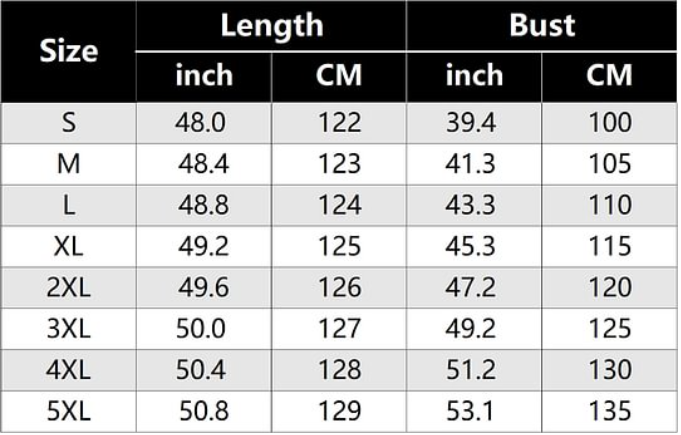 SIZE CHART: